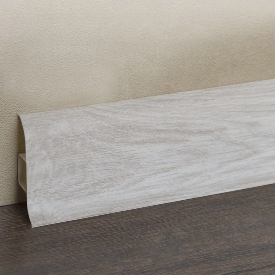 Плинтус 5801 ПВХ 58 мм длиной 2,2 м «Волшебная Палочка» — напольный плинтус для аккуратного оформления стыка между стеной и полом. Он закрывает технологический зазор и помогает сделать ремонт завершённым, особенно когда хочется получить ровную линию по периметру без сложной подгонки. Серый цвет с текстурой под дерево смотрится нейтрально и подходит к большинству напольных покрытий: ламинату, линолеуму, паркетной доске и ПВХ-плитке.