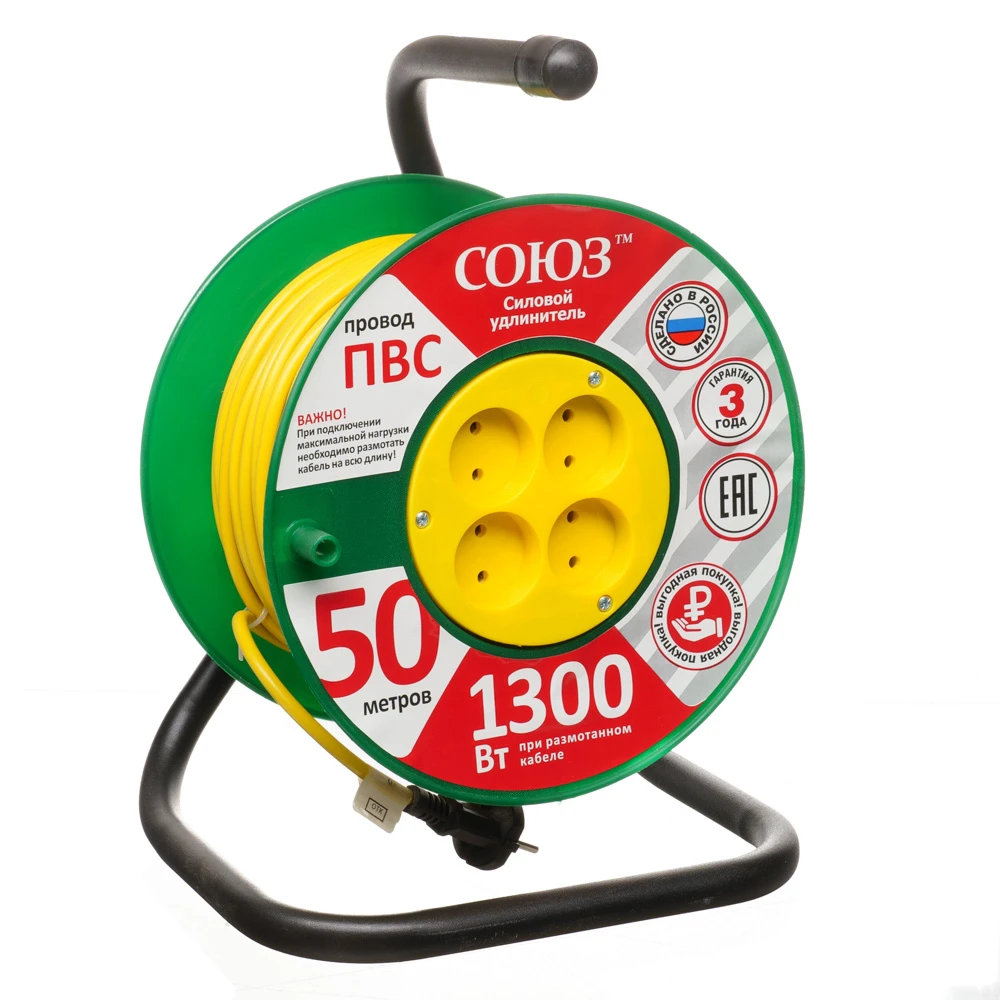 Удлинитель на катушке 2х0,75 4роз 50м СОЮЗ 3105