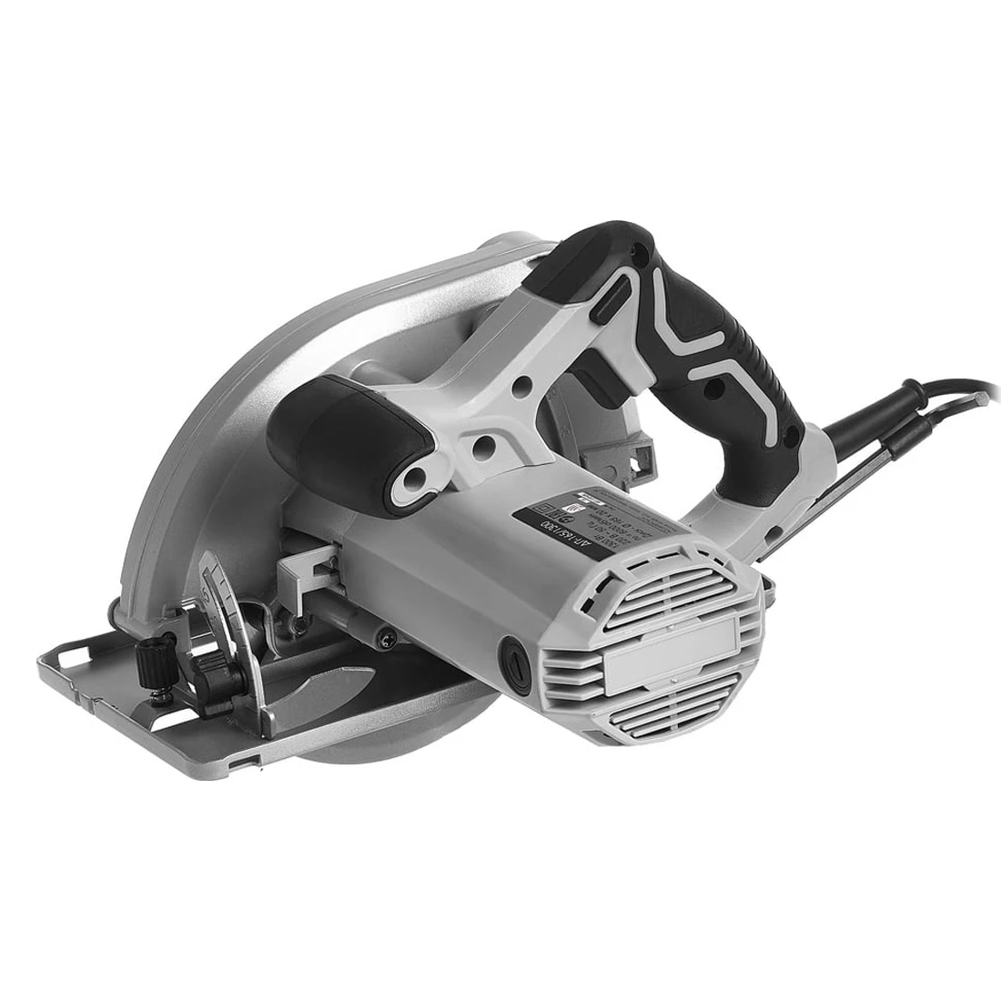 Пила питается от сети 230 В и имеет кабель длиной 4 м — это добавляет свободы на рабочей зоне, особенно когда розетка не рядом. Вес 4,7 кг делает модель достаточно устойчивой на заготовке, но при этом она остаётся удобной для работы «на руках». Регулировки оборотов и стационарной установки нет, направляющую шину использовать не предусмотрено, зато инструмент остаётся простым, понятным и надёжным для типовых плотницких задач.
