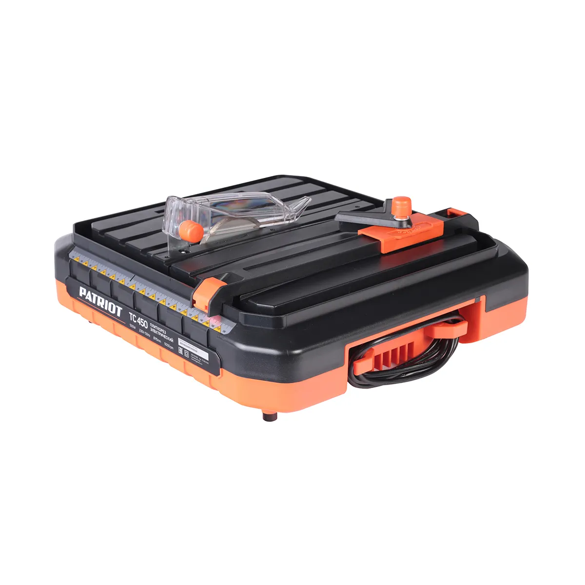 У PATRIOT TC 450 нижнее расположение двигателя, что делает компоновку компактной и удобной для переноски. Габариты без упаковки 490x490x160 мм позволяют хранить плиткорез на полке или перевозить в машине, а вес 6,74 кг — разумный баланс между устойчивостью на рабочем месте и мобильностью. Такой электрический плиткорез часто выбирают для небольших объёмов укладки, когда нужна аккуратность, но нет смысла брать крупный станок.