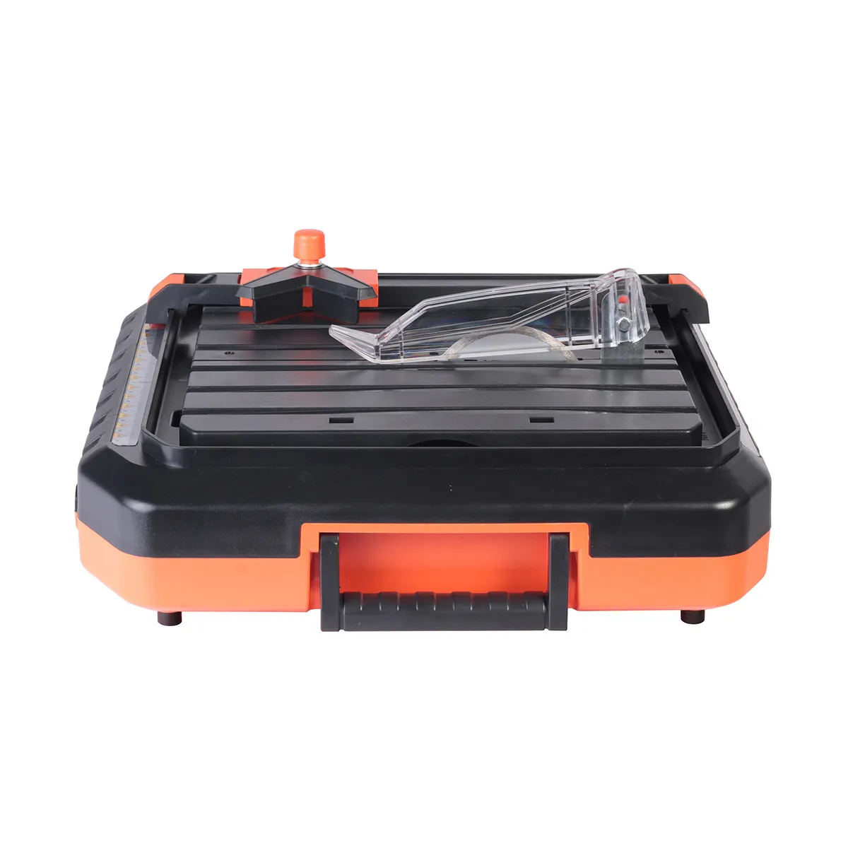 Для чистого реза предусмотрена мокрая резка плитки через поддон для воды: достаточно заполнить внутренний резервуар, чтобы диск охлаждался в процессе. Вода снижает перегрев и помогает бережнее резать твёрдые материалы, а также заметно уменьшает количество пыли в рабочей зоне. Если вы часто режете кафель или керамогранит, плиткорез с водяным охлаждением помогает делать работу спокойнее и аккуратнее.