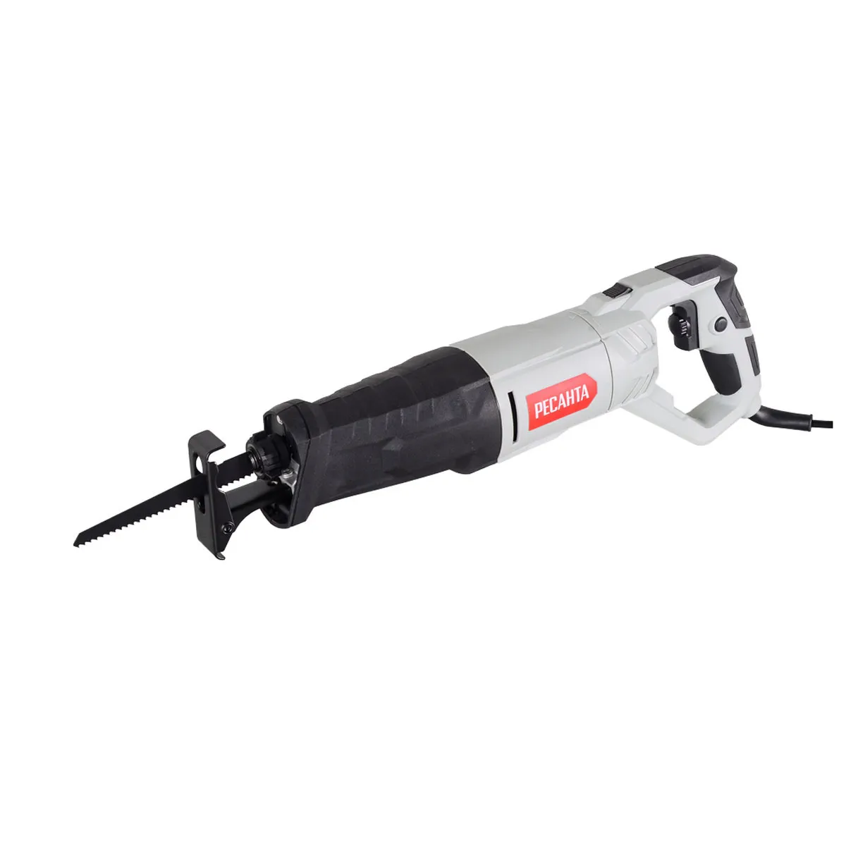 Сабельная пила Ресанта ПС-950Э используется в быту. Поворотная рукоятка позволяет регулировать рабочий угол корпуса на 90° вправо и влево. Эргономичная форма и прорезиненные вставки повышают надежности хвата и контроль рабочего процесса. Замена пилки и регулировка глубины реза происходит без использования дополнительных инструментов.