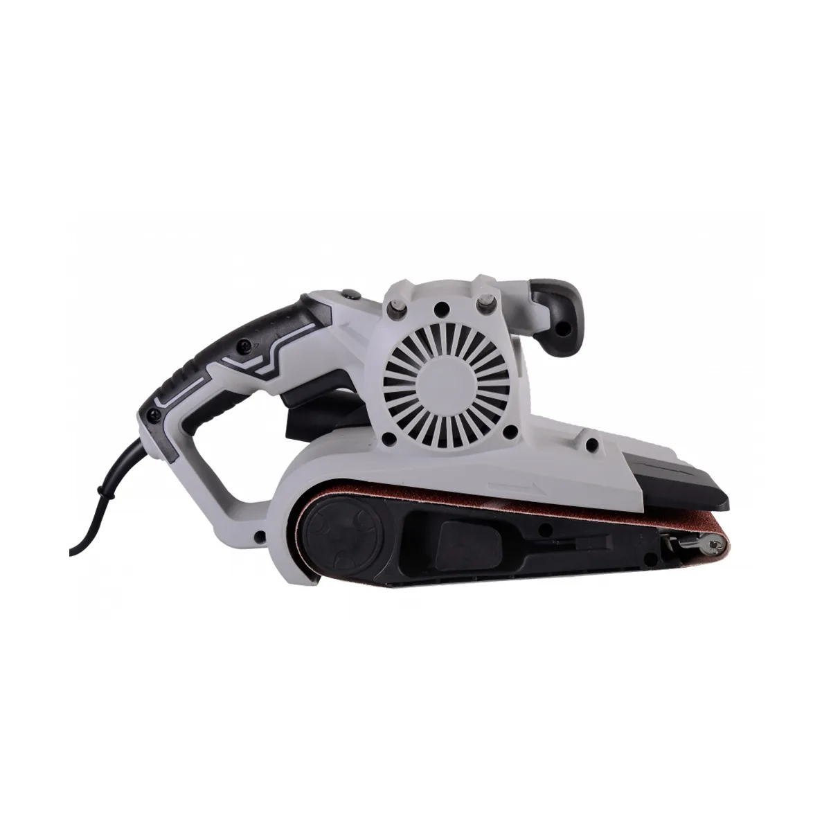 Ленточная шлифовальная машина состоит из корпуса, в основании которого находятся два ролика. На них надевается замкнутая лента с абразивной поверхностью. Один из роликов ведущий, второй служит для регулировки поперечного положения ленты. За счёт вращения ленты на большой скорости и движения инструмента по заготовке происходит снятие верхнего слоя материала.