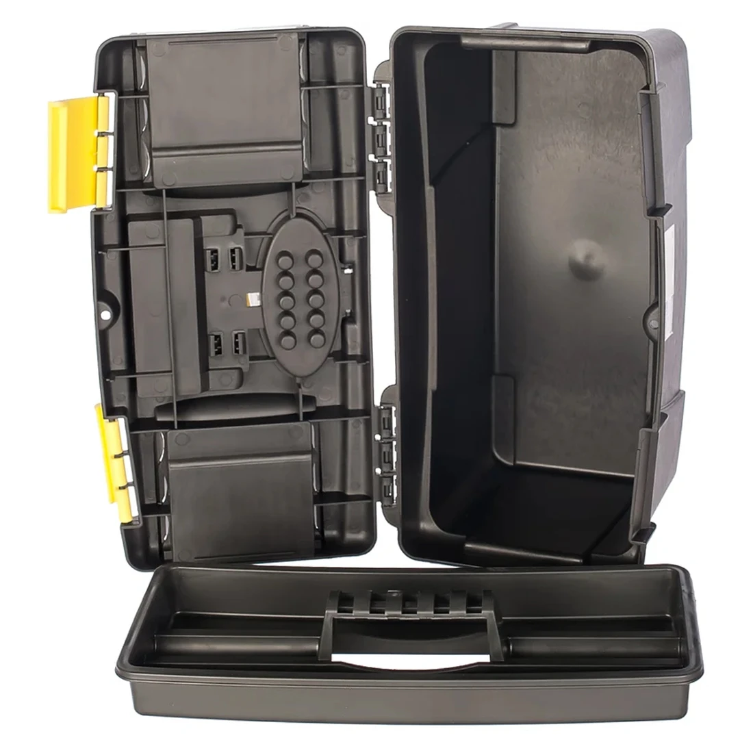 Для организации внутри предусмотрен подвижный лоток. В него удобно складывать инструменты первой необходимости и небольшие аксессуары, чтобы они не смешивались с основным содержимым. Если нужно уложить что-то погабаритнее, лоток можно сдвинуть и освободить место в основном отделении. Такой формат особенно удобен тем, кто ценит порядок: после работы проще разложить всё по местам и в следующий раз быстро собраться.