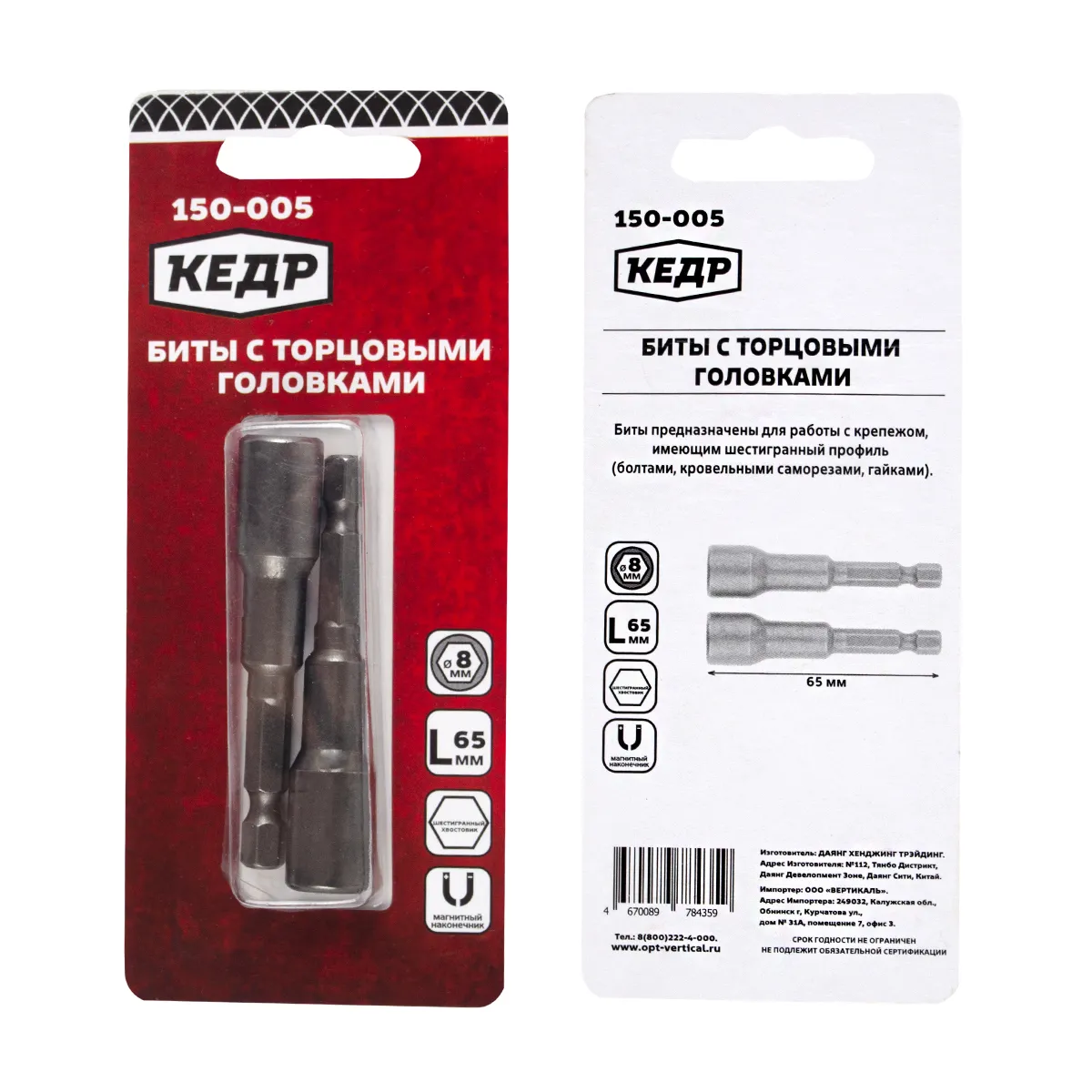 Биты с торцевыми головками 8 х 65 мм (набор 2 шт.) (1/12/144) "Кедр" 150-005