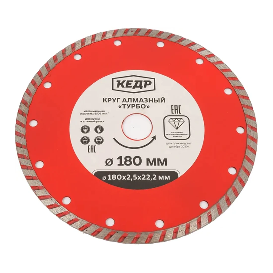 Круг алмазный Турбо КЕДР для сухой и влаж.резки 180х2,5х22,2 24719