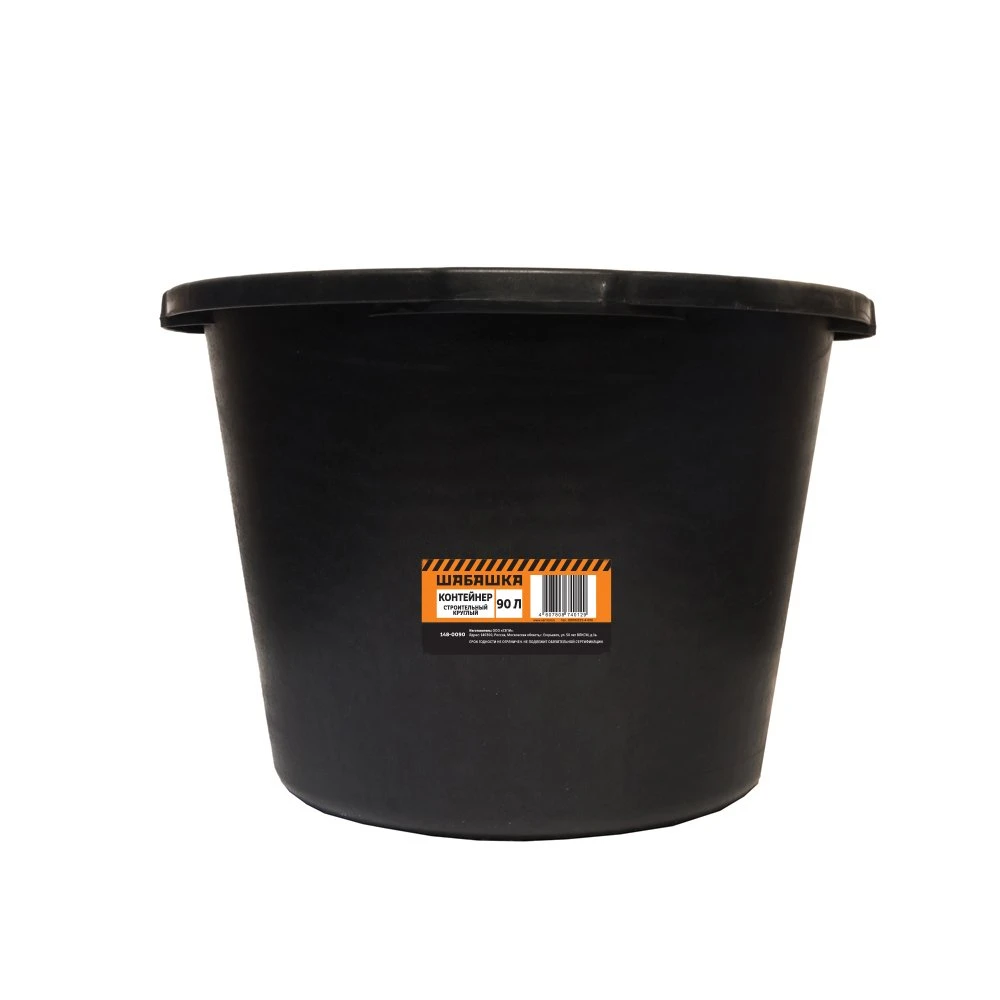 Таз строительный Шабашка круглый 90 л 204639 — это большая, прочная и удобная ёмкость для замешивания растворов и хранения стройматериалов. Круглая форма облегчает перемешивание: все компоненты быстро и равномерно распределяются по объёму, не скапливаясь по углам и не требуя лишних усилий при работе с лопатой или строительным миксером.