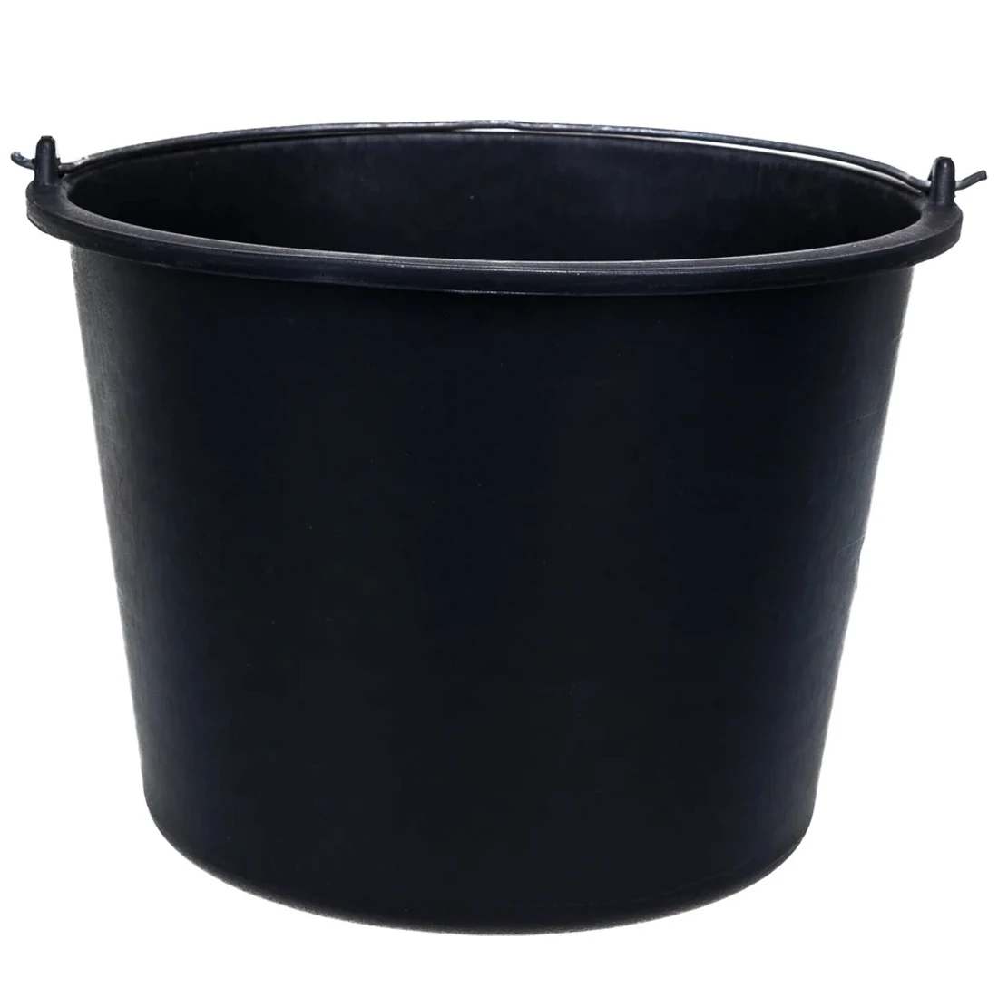 Цвет — чёрный, универсальный и практичный: на нём не заметны следы раствора, а само ведро легко моется. Подходит для домашних ремонтов, отделочных работ, приготовления плиточного клея, грунтовки, извести или даже садовых нужд. Устойчиво стоит на поверхности, не гнётся при заполнении и сохраняет форму даже при интенсивной эксплуатации.