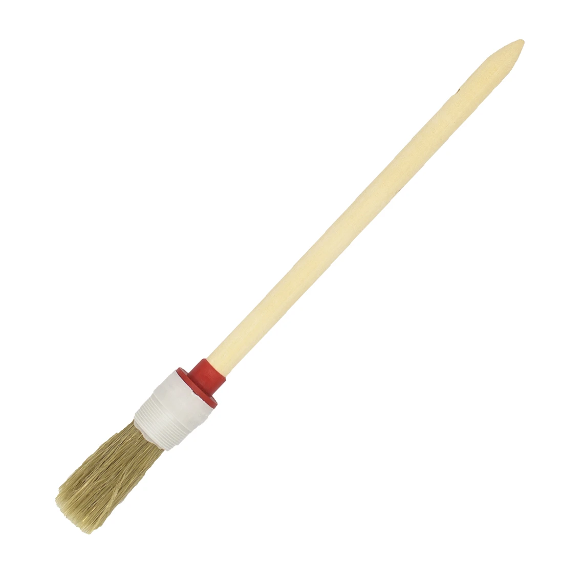 Щетина кисти выполнена из натурального ворса — он хорошо впитывает краску, надёжно удерживает её и равномерно распределяет по поверхности. Это особенно важно при точечной или направленной покраске. Натуральная щетина мягче синтетики, за счёт чего позволяет получать гладкое, аккуратное покрытие. Пластиковый бандаж крепко удерживает ворс, предотвращая его выпадение в процессе работы.