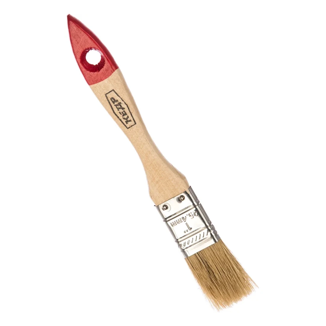 Кисть плоская КЕДР №1 натуральная щетина деревянная ручка 25 мм 23403 — удобный инструмент для точного окрашивания небольших и средних поверхностей. Её часто используют для подкраски рам, наличников, мебели и других элементов, где требуется аккуратность и чистый результат.