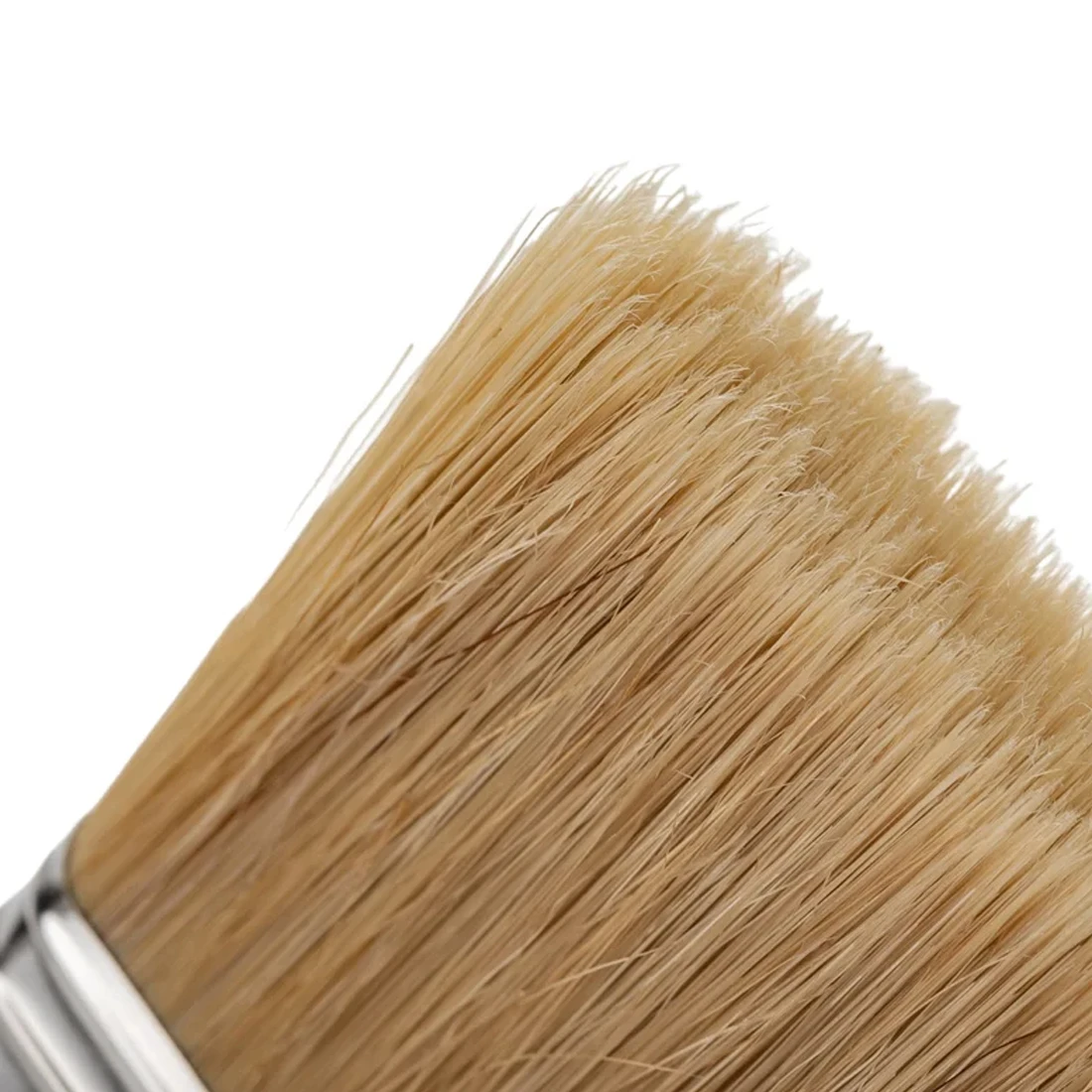 Материал щетины — натуральная, она хорошо впитывает состав и обеспечивает равномерное распределение ЛКМ по поверхности. Рукоять изготовлена из пластика: лёгкая, устойчивая к деформации, удобно лежит в руке даже при длительной работе. Металлический бандаж надёжно фиксирует щетину и препятствует её рассыпанию.