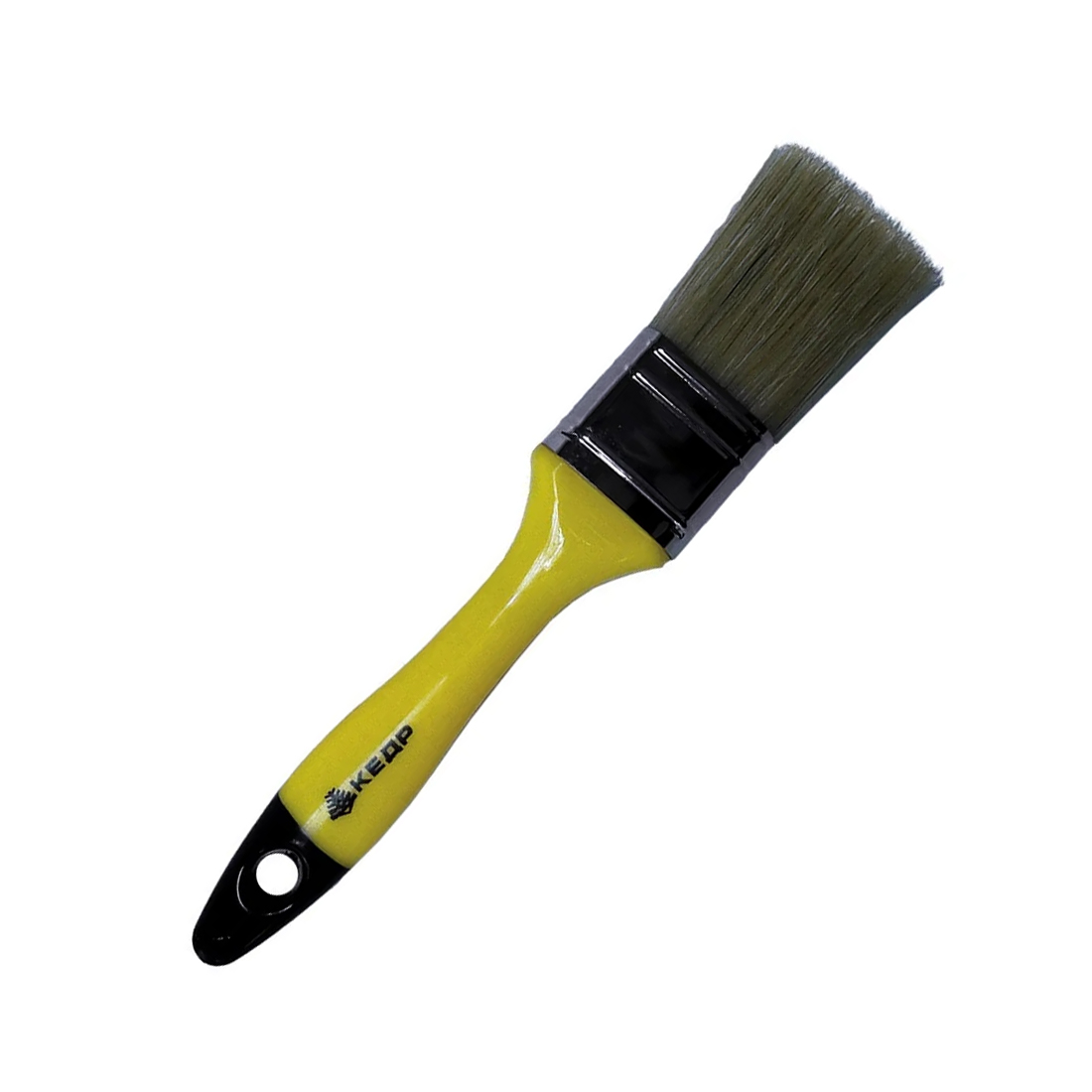 Кисть плоская КЕДР №1,5 смешанная щетина пластиковая ручка 38 мм 26154 — универсальный инструмент для окрашивания различных поверхностей. Компактная ширина рабочей части делает её удобной при покраске дверных коробок, наличников, мебели и других элементов, где важна аккуратность.