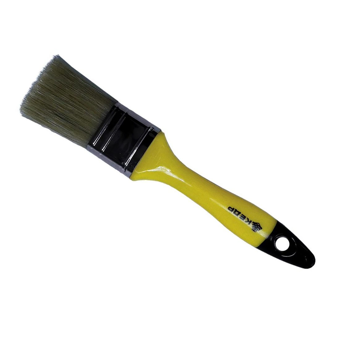 Пластиковая ручка лёгкая, прочная и удобная в работе: кисть комфортно держать даже при продолжительном окрашивании. Металлический бандаж надёжно фиксирует щетину и защищает её от выпадения. Для удобного хранения предусмотрено отверстие для подвешивания — кисть легко разместить на крючке или держателе, сохраняя форму ворса.