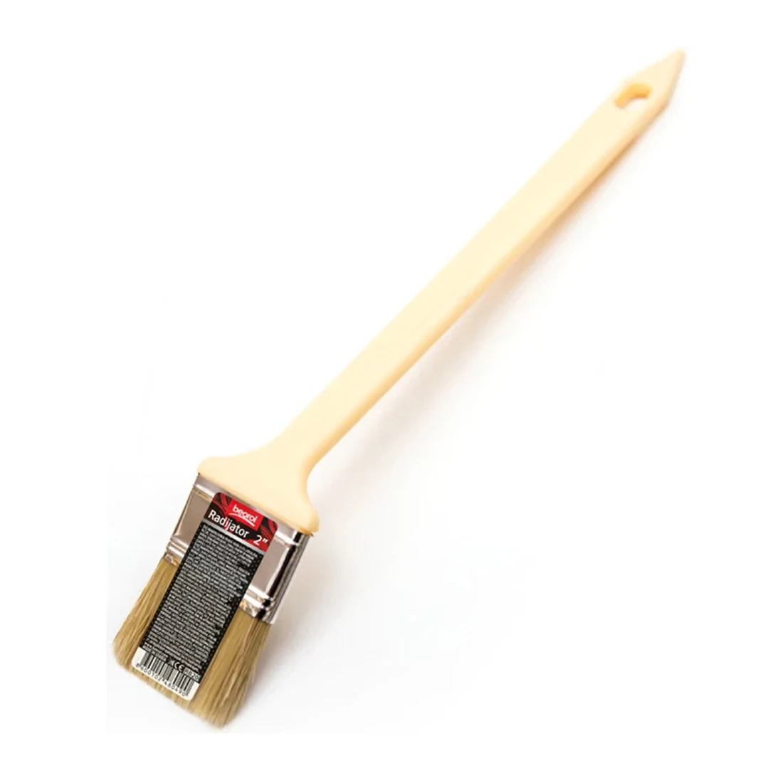 Кисть радиаторная BEOROL №2 40516 — практичный инструмент, специально разработанный для окрашивания радиаторов отопления и других труднодоступных мест. Изогнутая форма позволяет легко добираться до узких промежутков и углов, куда обычной кистью дотянуться сложно.