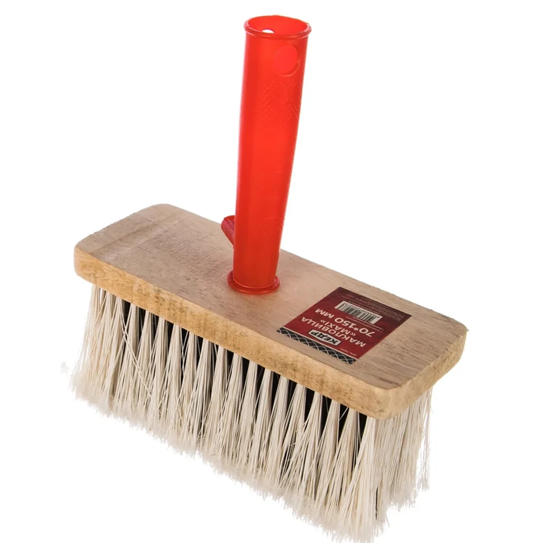 Размер макловицы — 70 × 150 мм, поэтому одним движением вы покрываете значительный участок. Искусственная щетина устойчива к износу, не реагирует на воду и моющие растворы, легко очищается и служит дольше натуральной. Ее свойства особенно ценны при работе с лакокрасочными материалами на водной основе.