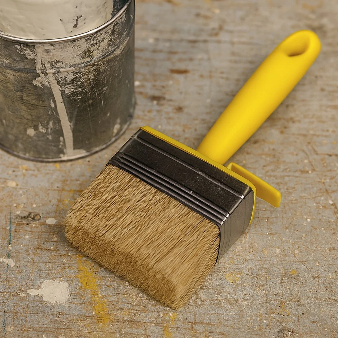 Размер инструмента — 30 × 100 мм, что обеспечивает хорошее покрытие за один проход, сохраняет контроль и экономит силы. Ворс натуральной щетины мягко, но уверенно удерживает и распределяет краску или лак, не оставляя полос и не разбрызгивая. Это делает её отличной для минеральных и масляных красок, а также для нанесения лака на деревянный пол.