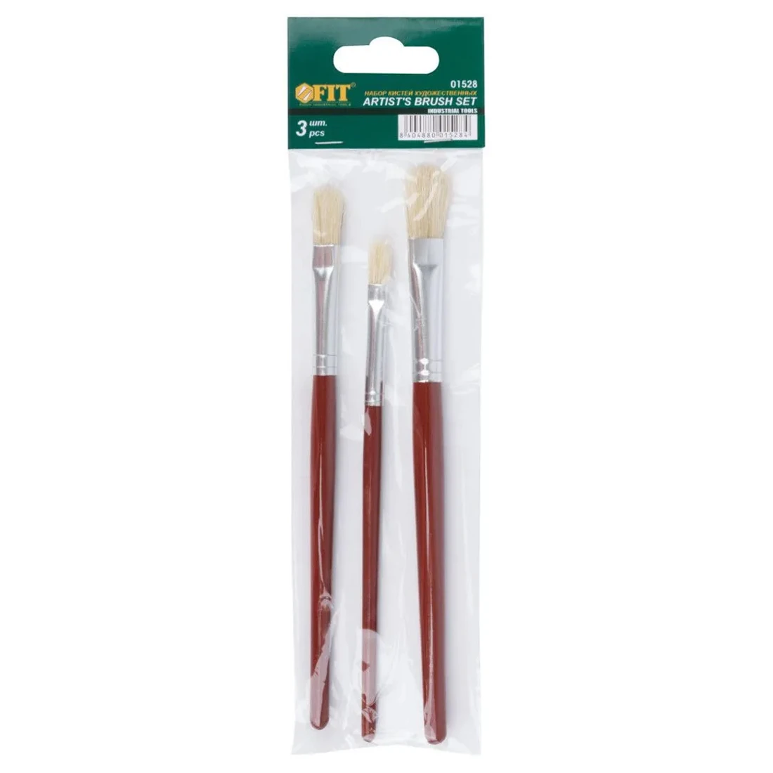 Набор кистей художественных 3 шт. FIT 01528 — универсальный комплект для творчества, декоративных работ и окрашивания небольших поверхностей. Кисти выполнены из натуральной светлой щетины, которая хорошо удерживает краску и равномерно распределяет её по поверхности, обеспечивая аккуратное покрытие.