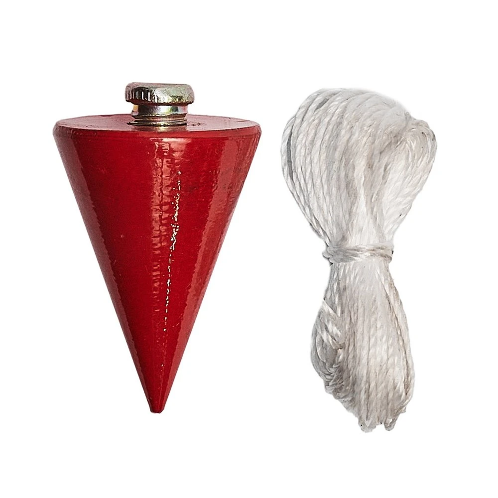 Изготовлен из прочной стали, он выдерживает регулярную работу и не теряет форму. Конусообразная форма грузика даёт надёжную фиксацию: отвес легко закрепляется, не скользит по поверхности и не сбивается с положения. Хотя в названии указано «100 г», фактический вес модели — 300 г, что обеспечивает устойчивость при использовании на открытых участках или в условиях легкого ветра.