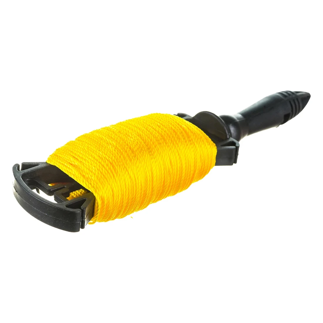 В работе просто: закрепите один конец в стартовой точке (например, на крючок, гвоздь, шуруп), натяните шнур до нужной точки и используйте его как ориентир. После — плавно смотайте обратно, контролируя натяжение и форму шнура.
