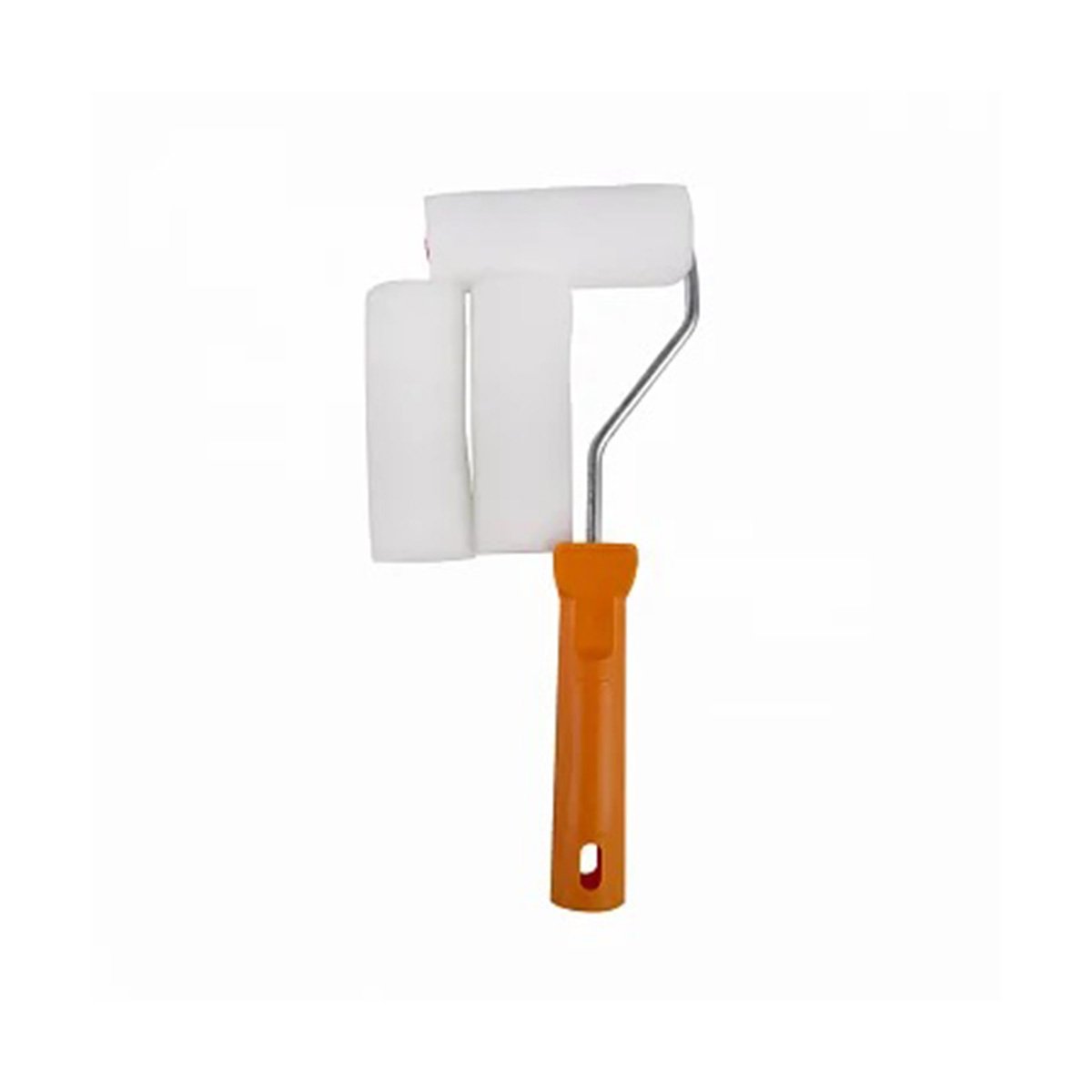 Длина рабочего ролика составляет 100 мм, диаметр — 16 мм, что делает инструмент манёвренным и удобным для окрашивания углов, откосов, наличников, декоративных элементов и других узких зон. Ручка из прочного пластика длиной 400 мм удобно лежит в руке и не скользит. Бюгель диаметром 6 мм обеспечивает надёжное крепление ролика и лёгкую замену шубок.
