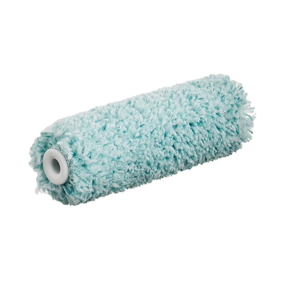 Ворс высотой 12 мм изготовлен из микрофибры с добавлением велюровых волокон, что обеспечивает отличное впитывание и равномерную отдачу краски. Материал сочетает мягкость и прочность, благодаря чему валик легко скользит по поверхности, не оставляя полос и ворсинок. Сердцевина диаметром 15 мм устойчива к нагрузкам и обеспечивает надёжную фиксацию, а сама конструкция рассчитана на установку в бюгель диаметром 6 мм. Такой формат считается одним из самых удобных для мини-валиков и позволяет быстро менять сменные элементы без лишних усилий.