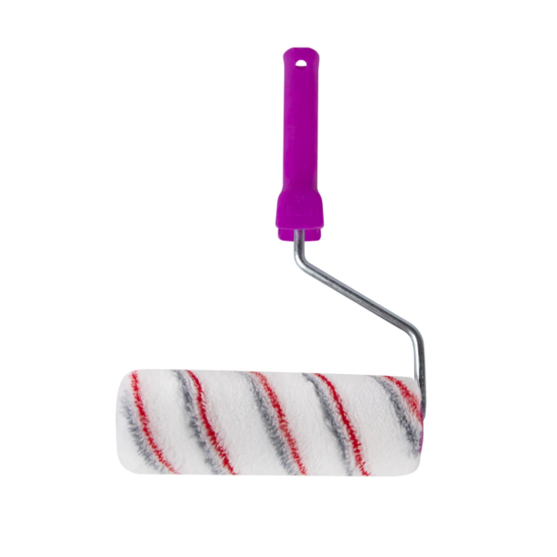 Инструмент поставляется в сборе: прочная пластиковая рукоятка длиной 165 мм удобно лежит в руке, а стальной стержень обеспечивает надёжность конструкции. Бюгель диаметром 8 мм позволяет уверенно фиксировать ролик и обеспечивает плавное вращение во время окрашивания. Вес около 0,25 кг делает валик лёгким и удобным, снижая нагрузку на руку.