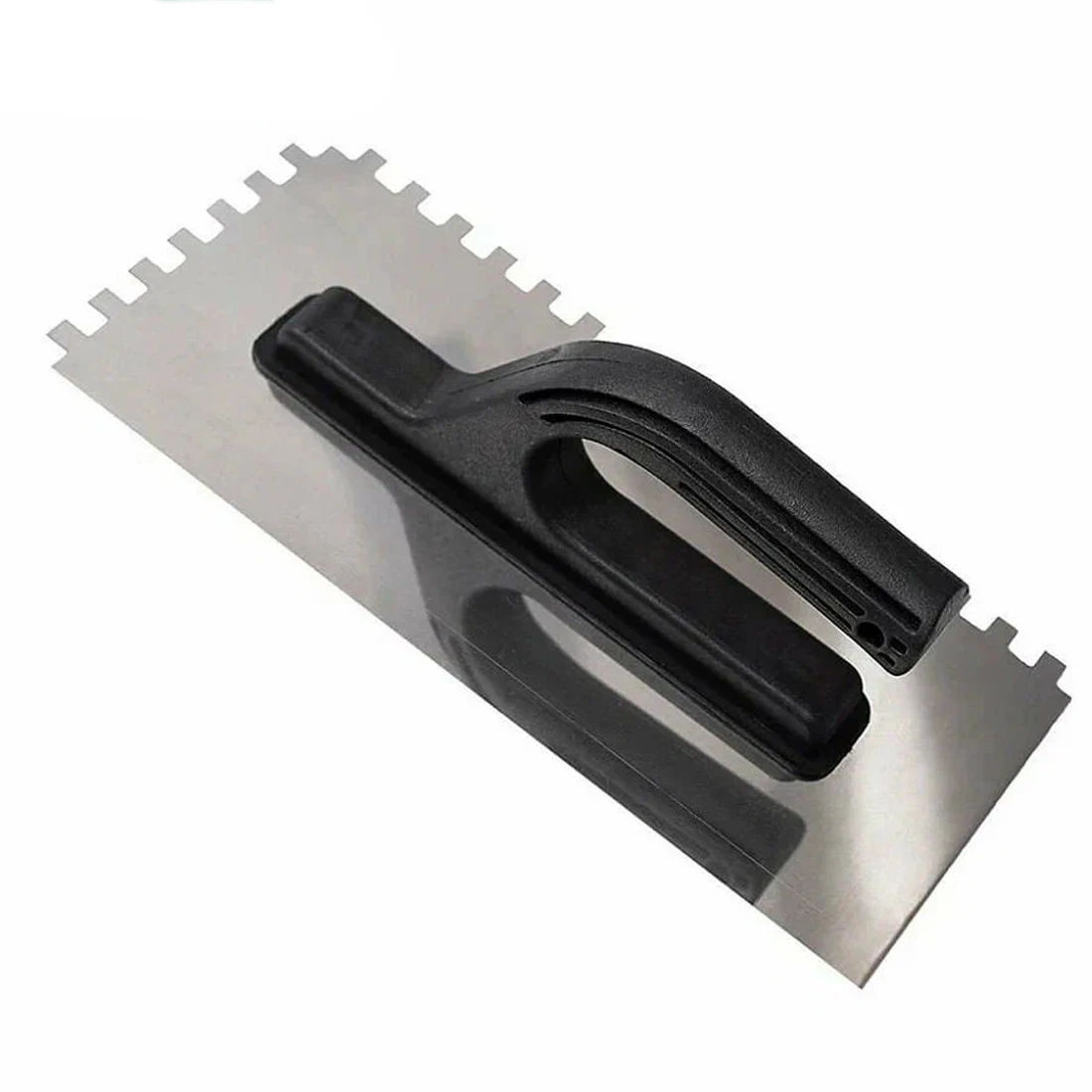 Рукоятка выполнена из прочного пластика и имеет эргономичную форму, рассчитанную на комфортный хват при длительной работе. Она удобно лежит в руке, не скользит при использовании в перчатках и помогает уверенно контролировать угол наклона инструмента. Это особенно важно, когда нужно выдерживать одинаковое давление по всей площади и получить однородный рисунок гребней. Небольшой вес делает работу менее утомительной, а сама гладилка зубчатая из нержавеющей стали остаётся послушной и предсказуемой в движении.