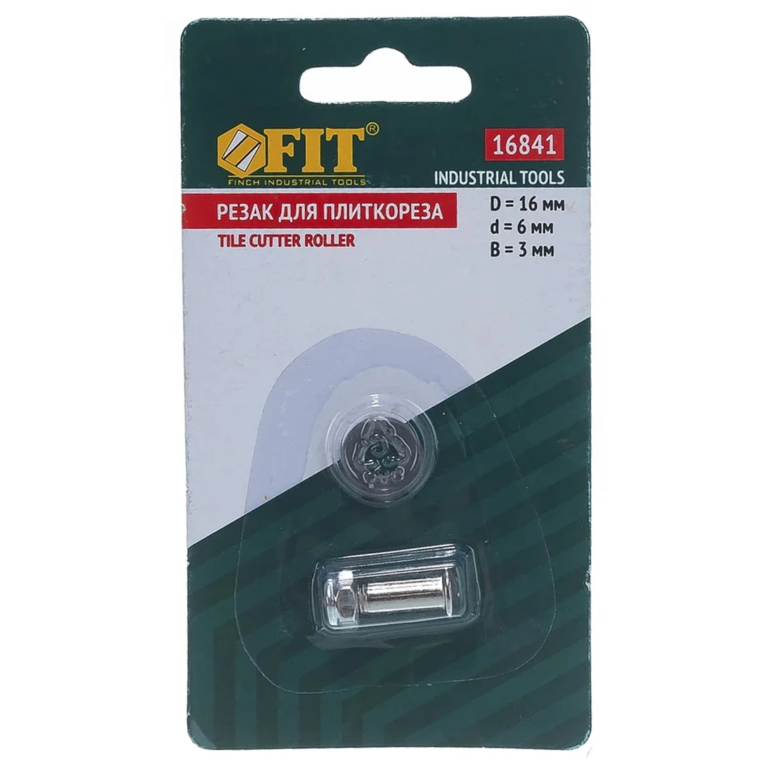 Внешний диаметр режущего ролика составляет 16 мм, диаметр отверстия 6 мм, толщина 3 мм. Эти размеры соответствуют распространенным моделям ручных плиткорезов, благодаря чему запасной ролик для плиткореза FIT легко подобрать взамен штатного изношенного элемента. При правильной установке колесо надежно фиксируется на оси, свободно вращается и обеспечивает ровный надрез по глазури без лишних сколов и задиров, что особенно важно при резке облицовочной плитки на видимых участках.
