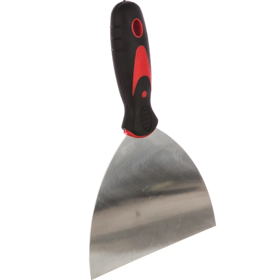 Небольшой вес шпателя около 0,115 кг делает его легким и хорошо управляемым. Инструмент не «тянет» руку при длительной работе, его удобно держать и контролировать угол наклона полотна к поверхности. Шпатель с двухкомпонентной ручкой приятен в использовании и в перчатках, и голой рукой, поэтому подойдет как для интенсивной профессиональной эксплуатации, так и для периодических домашних ремонтов.