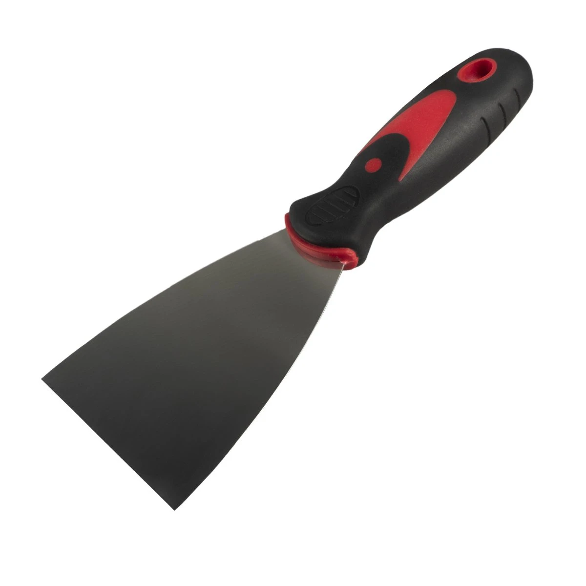 Шпатель предназначен не только для нанесения и выравнивания шпаклевок и других строительных растворов, но и для демонтажа старых покрытий. Прочное полотно из нержавейки позволяет поддевать отслаивающуюся краску, сбивать слабые участки старой шпаклевки, срезать наплывы и выступающие кромки. Таким шпателем для ремонта стен удобно очищать основание от дефектных мест перед новым выравниванием, особенно на небольших участках и вокруг сложных элементов, где широкие скребки работать уже не позволяют.