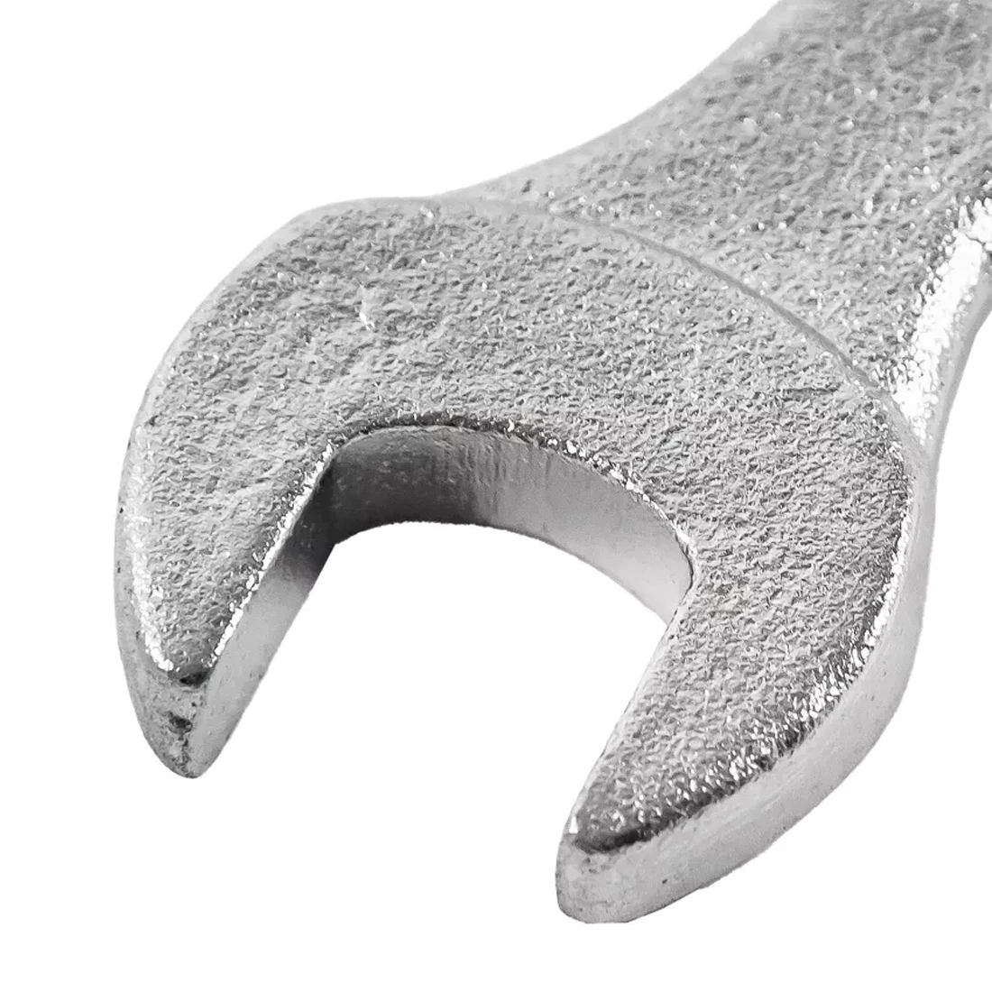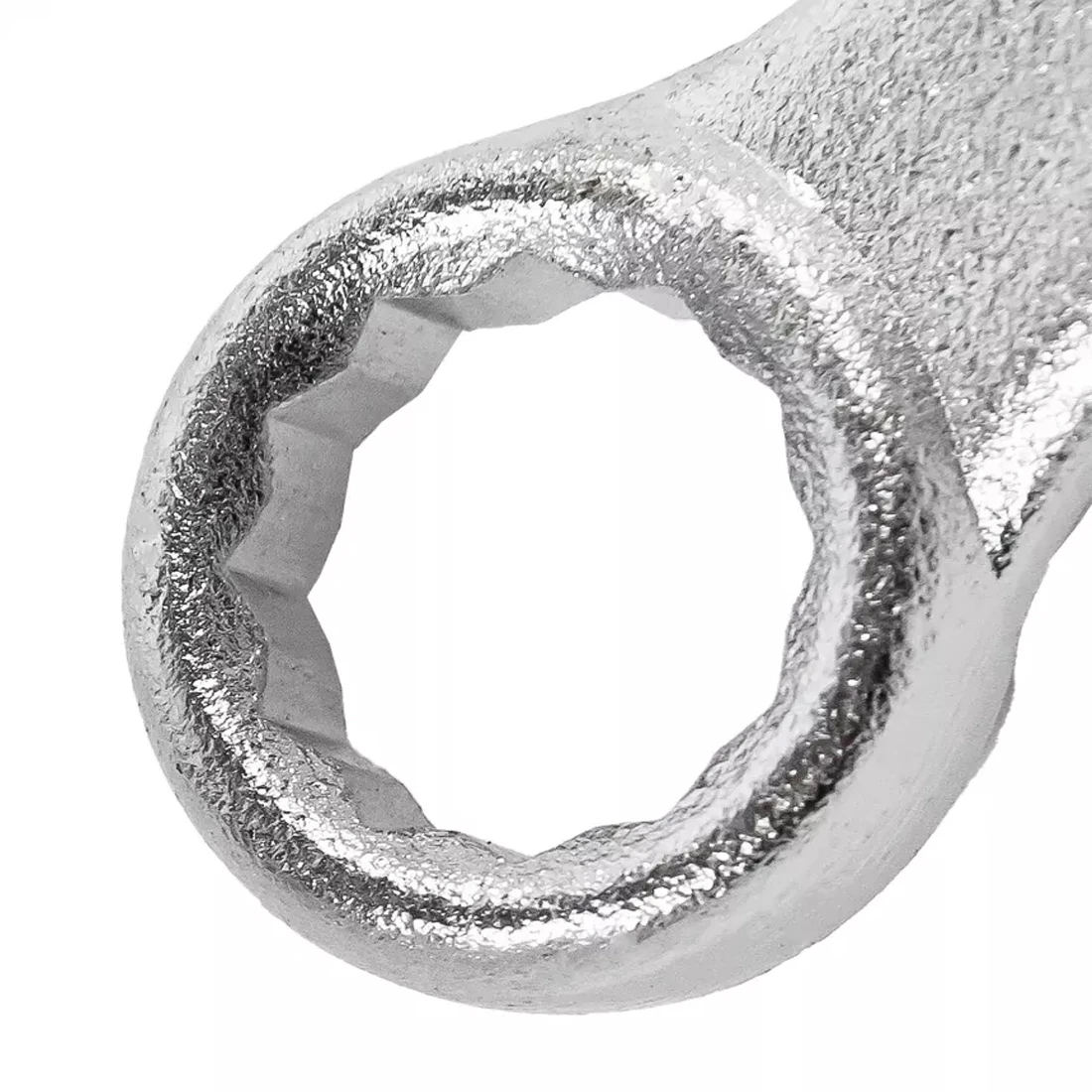 Рожковый зев расположен под углом 15° к оси рукояти — такое решение обеспечивает лёгкий доступ к крепежу в труднодоступных местах, например, за корпусом оборудования или внутри механизмов. Накидная сторона с шестигранным профилем обеспечивает плотный захват и равномерное распределение усилия, что исключает срыв граней и повреждение болтов. Такая конструкция делает работу безопасной и точной даже при высоких нагрузках.