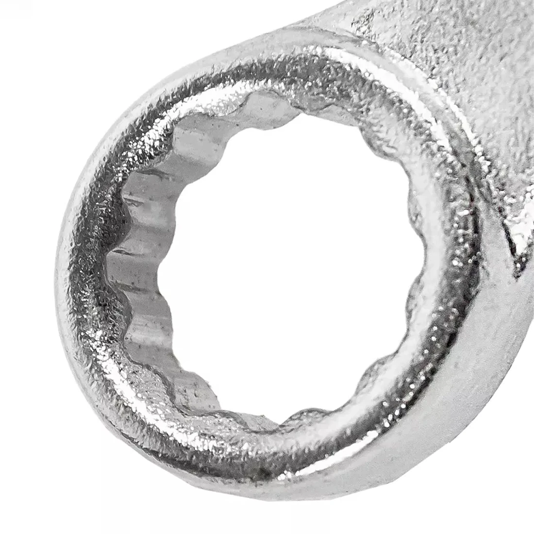 В конструкции нет трещотки и удлинителя, поэтому ничего не мешает руке, а сам инструмент остается компактным и легким. Комбинированный ключ 12 мм с хромированным покрытием — тот случай, когда простота конструкции работает на долговечность, а качество обработки напрямую чувствуется в каждом повороте.