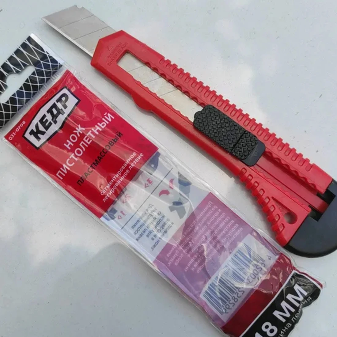 Нож пистолетный 18мм Кедр 25060 — это практичный, лёгкий и долговечный инструмент, который сочетает удобство, безопасность и эффективность. Прочное сегментированное лезвие из инструментальной стали, надёжный фиксатор и эргономичный пластиковый корпус обеспечивают точный рез и комфорт в работе. Такой нож станет незаменимым помощником при ремонте, отделке, упаковке или канцелярских задачах, гарантируя чистый результат и долговечность при ежедневном использовании.