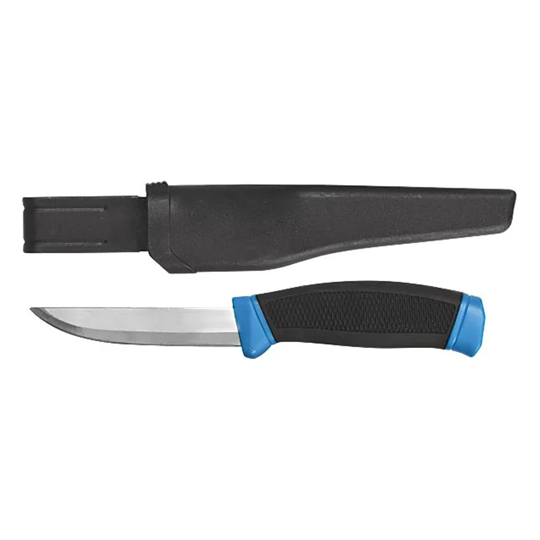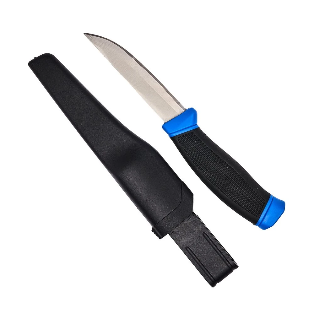 Лезвие из нержавеющей стали, двухкомпонентная ручка, пластиковые ножны |