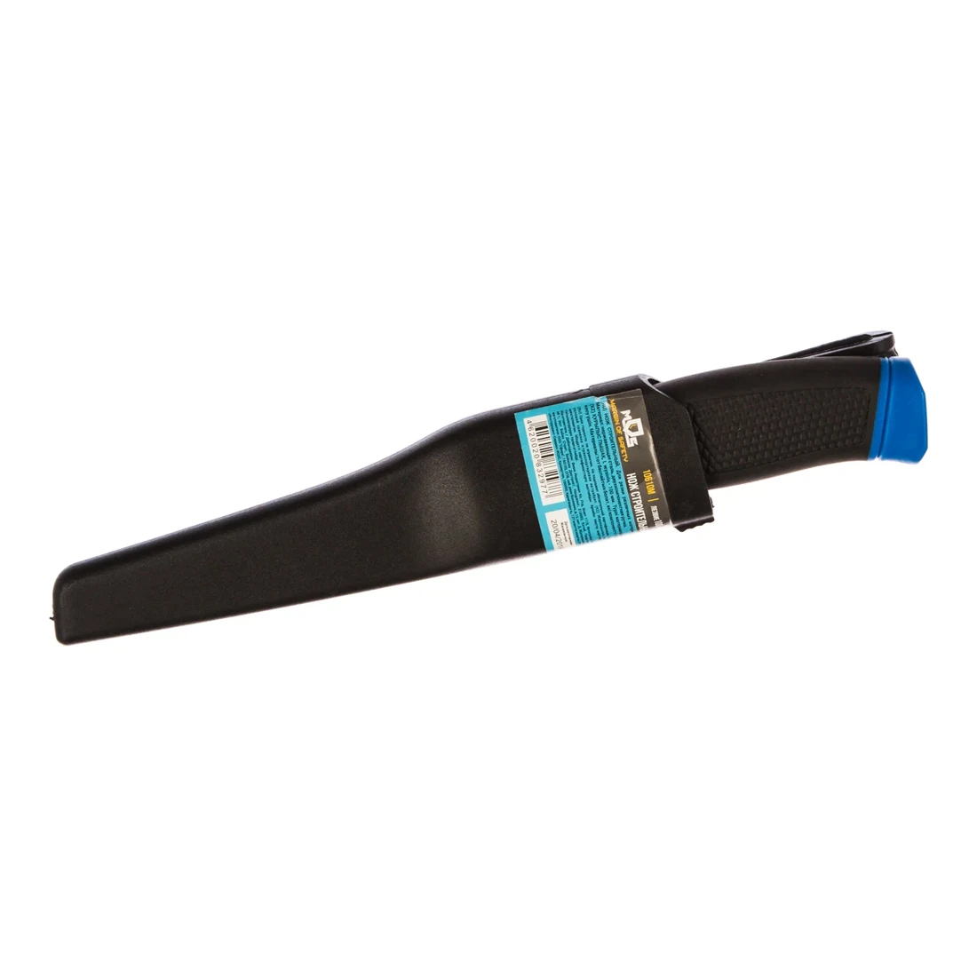 Нож поставляется в комплекте с пластиковыми ножнами — они защищают лезвие от повреждений и обеспечивают безопасное хранение. Это удобно, если инструмент постоянно находится с вами на объекте или в сумке с другими принадлежностями. Класс изделия бытовой, но по прочности и удобству он вполне подходит и для профессионального использования.