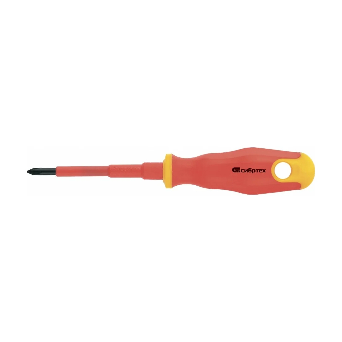 Стержень длиной 80 мм изготовлен из хром‑ванадиевой стали (CrV), что обеспечивает хорошую прочность и долговечность. Рукоять двухкомпонентная, с прорезиненным внешним слоем — удобно держать даже если руки чуть влажные или требуется приложить усилие. Цвет рукояти — красный/жёлтый, что добавляет «инструменту‑мастеру» вид профессионализма.
