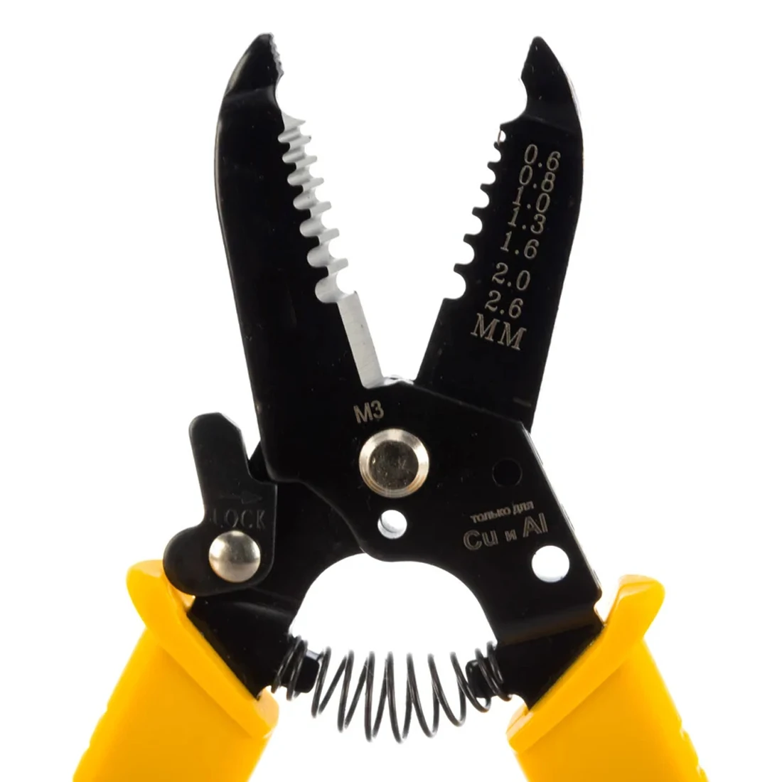 Губки изготовлены из прочной инструментальной стали и выдерживают частые циклы без потери геометрии. Регулировка диаметра оголяемого участка позволяет быстро подстроиться под конкретный провод: диапазон охватывает кабели от 0,6 до 2,6 мм по внешнему диаметру жилы, поэтому подготовка концов для клеммников, гильз и пайки идёт без «разлохмачивания» и задиров.
