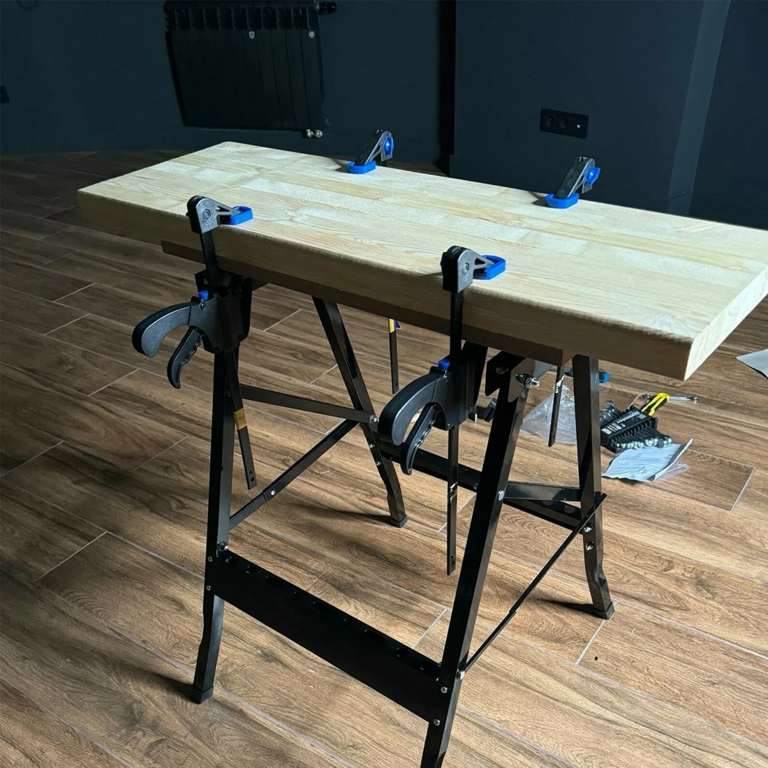 Рычаг снабжён удобной резиновой накладкой, предотвращающей скольжение руки, и обеспечивает уверенный захват во время работы. Быстрозажимная система позволяет моментально зафиксировать деталь или освободить её одним движением, экономя время и силы мастера. Механизм сжатия работает плавно и точно, гарантируя равномерное распределение давления по всей поверхности зажима.