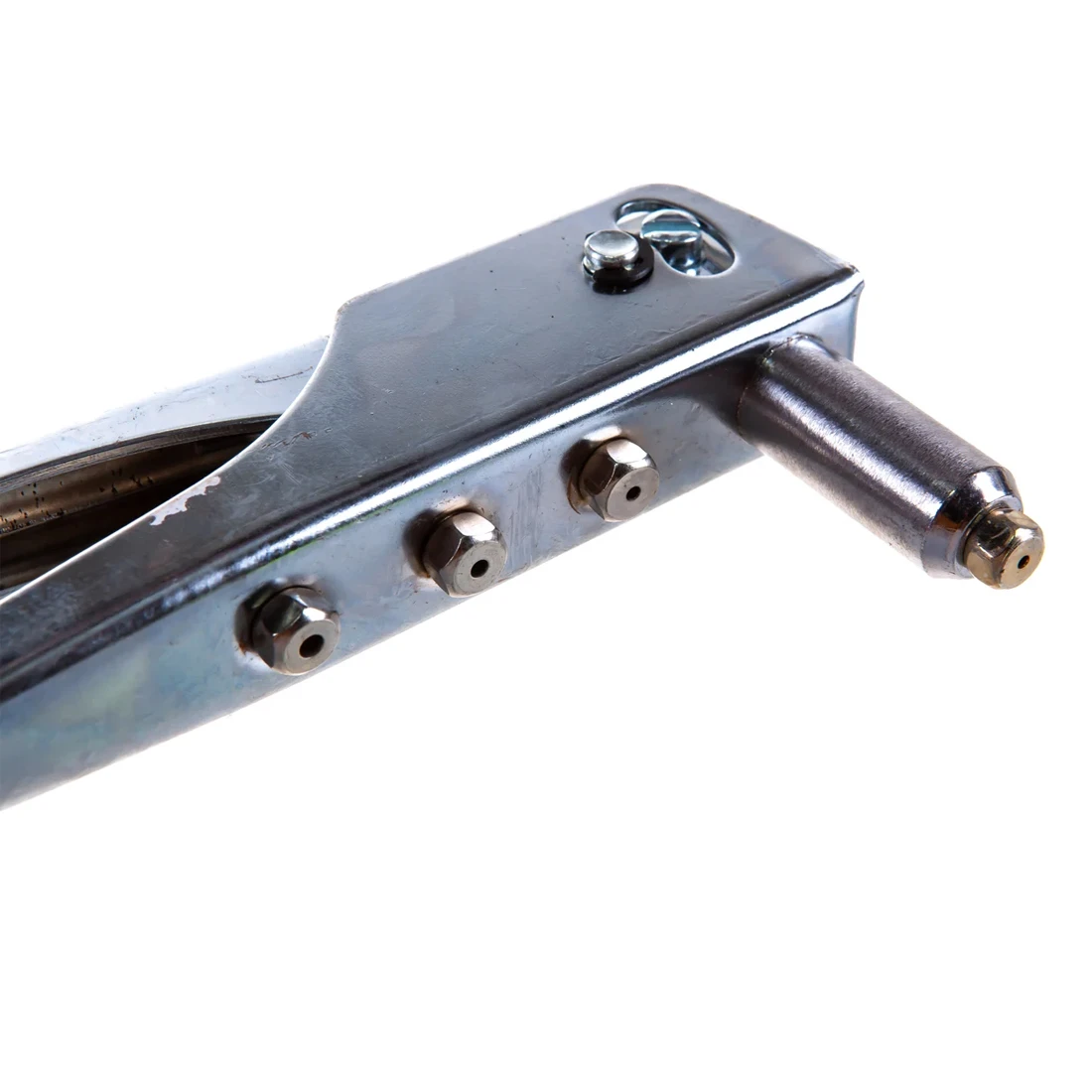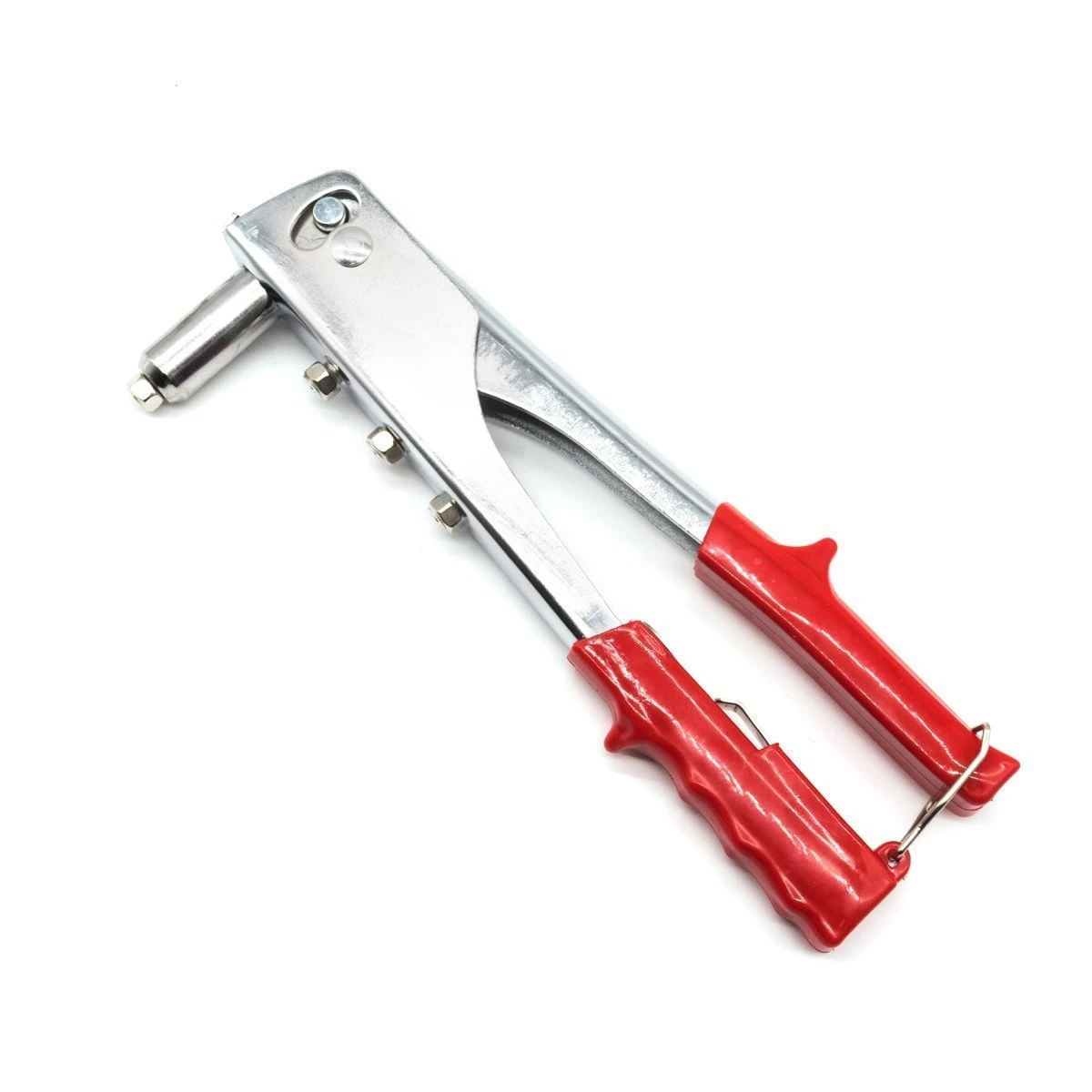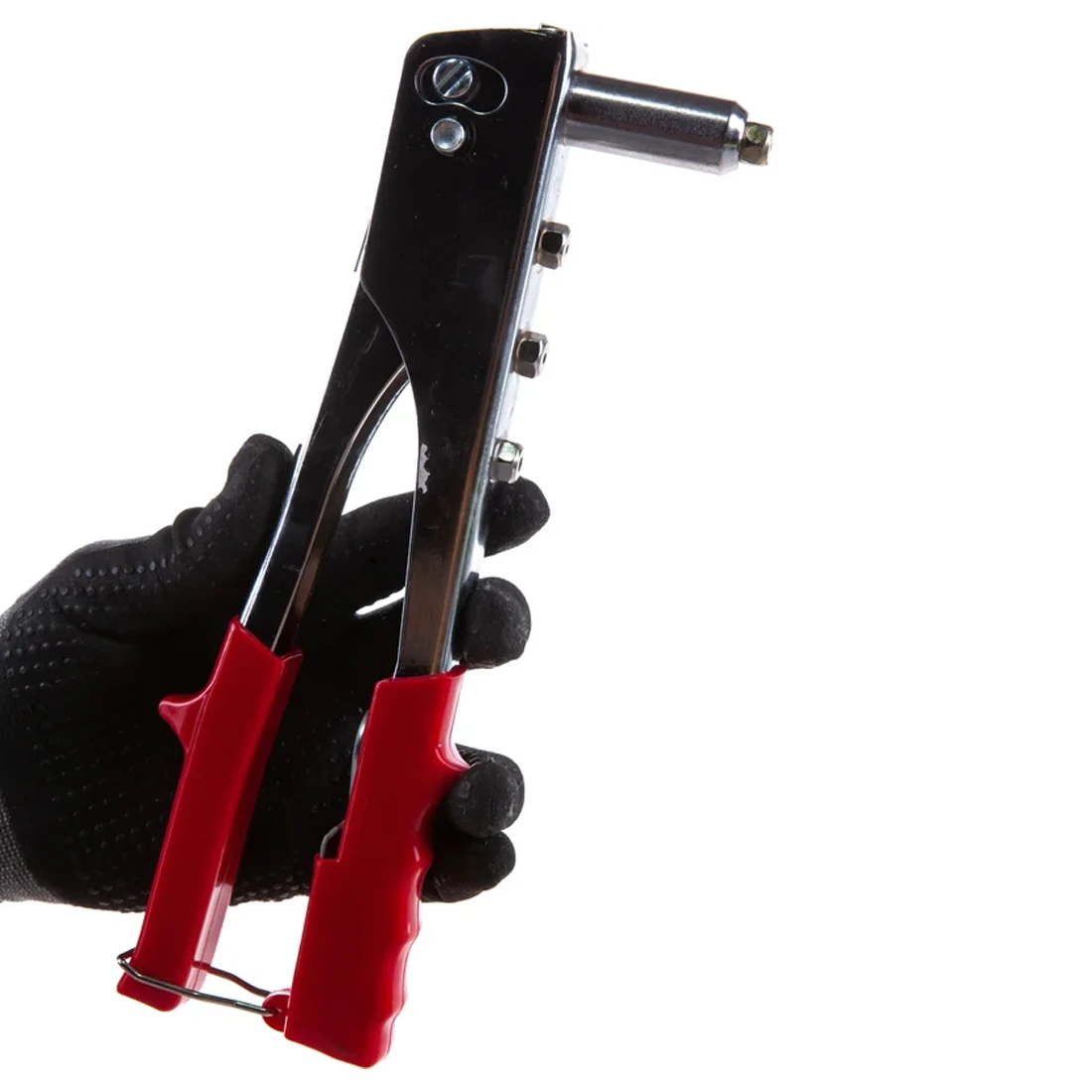 Он рассчитан на работу с заклепками диаметром 2,4 мм, 3,2 мм, 4,0 мм и 4,8 мм, что обеспечивает универсальность при монтаже металлических, алюминиевых и пластиковых элементов. Максимальная толщина скрепляемых деталей — до 45 мм — позволяющая справляться со сложными задачами без уступок качеству.