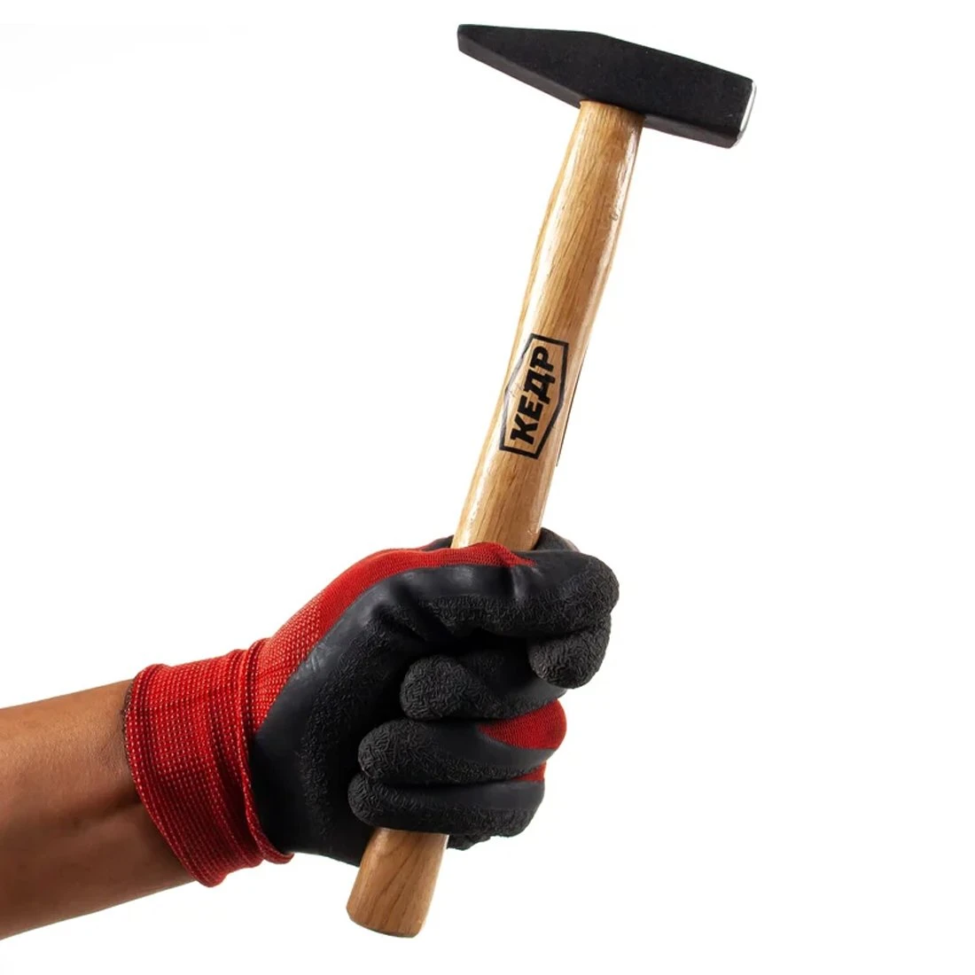 Рукоять выполнена из дерева и имеет классическую форму, рассчитанную на удобный хват. Натуральное дерево приятно лежит в руке, не переохлаждает ладони и обеспечивает надёжное сцепление как с голой рукой, так и с рабочими перчатками. Древесина частично гасит вибрацию, возникающую при ударе, поэтому нагрузка на кисть и предплечье заметно ниже, чем у полностью металлических молотков. Это особенно важно при серийных ударах и длительной работе, когда требуется сохранить точность движений.