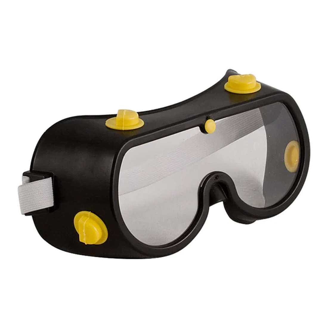 Корпус очков выполнен из прочного пластика с сочетанием чёрного и жёлтого цветов, что делает их не только функциональными, но и визуально выразительными. Литой носоупор обеспечивает устойчивую посадку на лице, а конструкция закрытого типа даёт базовую защиту спереди и по бокам. Эти очки подходят для защиты от механических частиц и брызг, что делает их универсальными для многих задач при ремонте или обработке материалов.