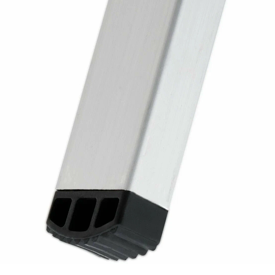 Конструкция изготовлена из экструдированных алюминиевых профилей, что обеспечивает высокую прочность при небольшом весе. Алюминий устойчив к коррозии, поэтому стремянку можно использовать как внутри помещений, так и на улице. Прочное крепление ступеней к боковинам выполнено с помощью шести заклёпок на каждую ступень, что повышает жёсткость конструкции и надёжность при нагрузке.