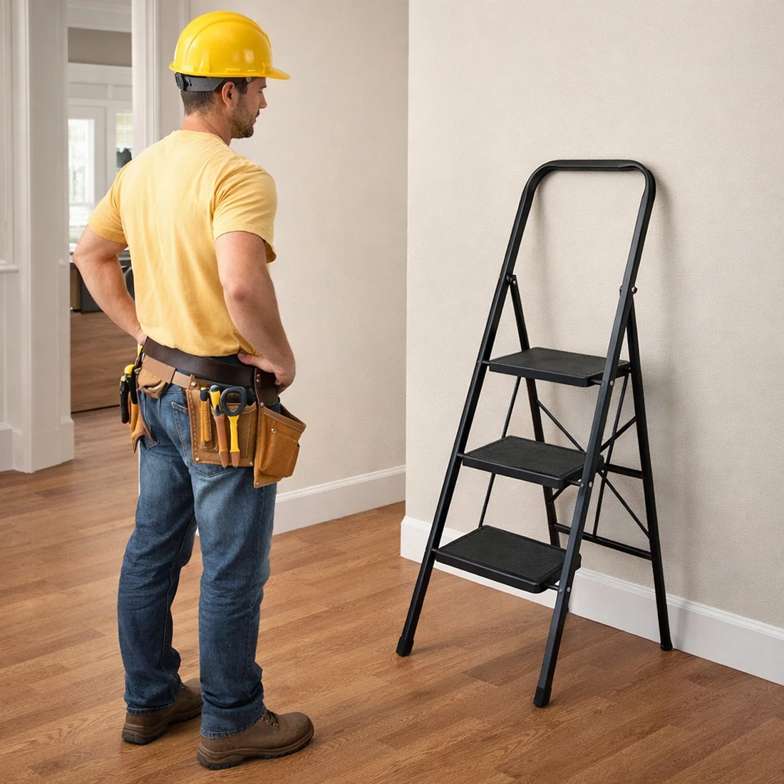 Стремянку легко переносить, ею удобно пользоваться при проведении работ на небольшой высоте.