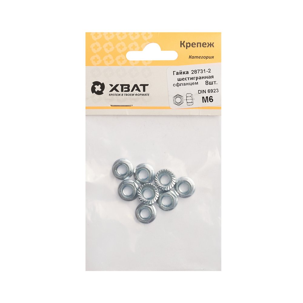 Гайка фланц шестигран М6 8шт Хват 28731-2