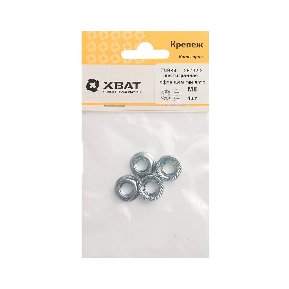Гайка фланц шестигран М8 4шт Хват 28732-2