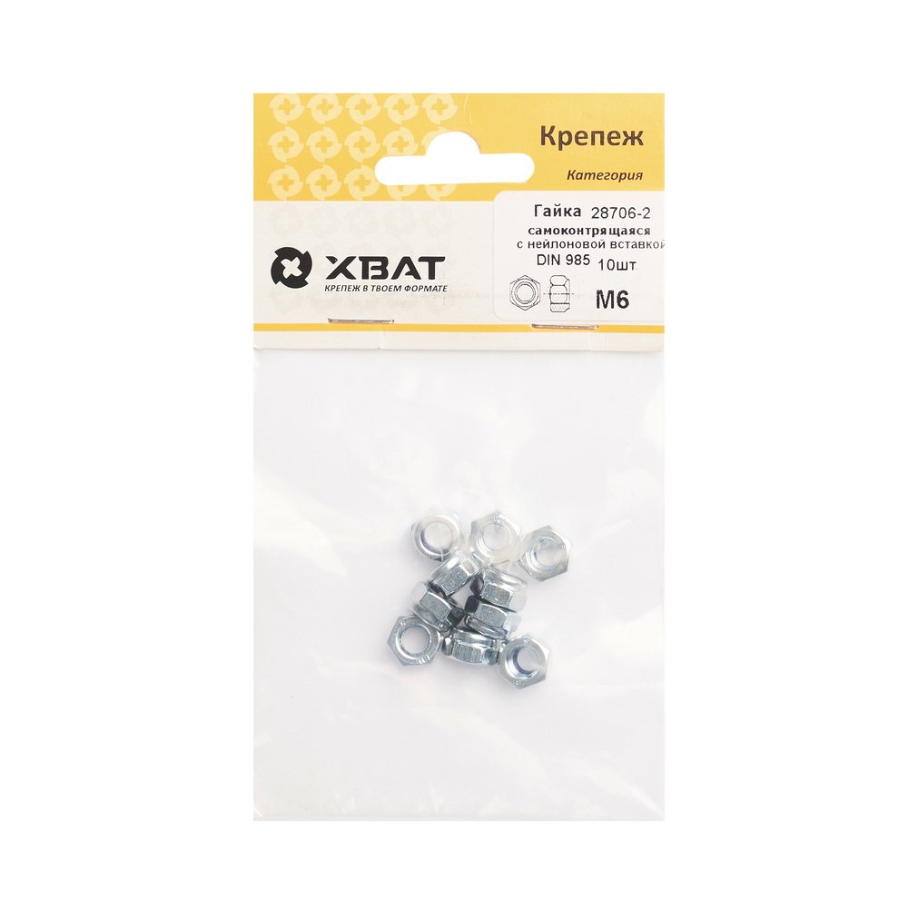 Гайка самоконтрящ М6 10шт с нейл вставк Хват 28706-2