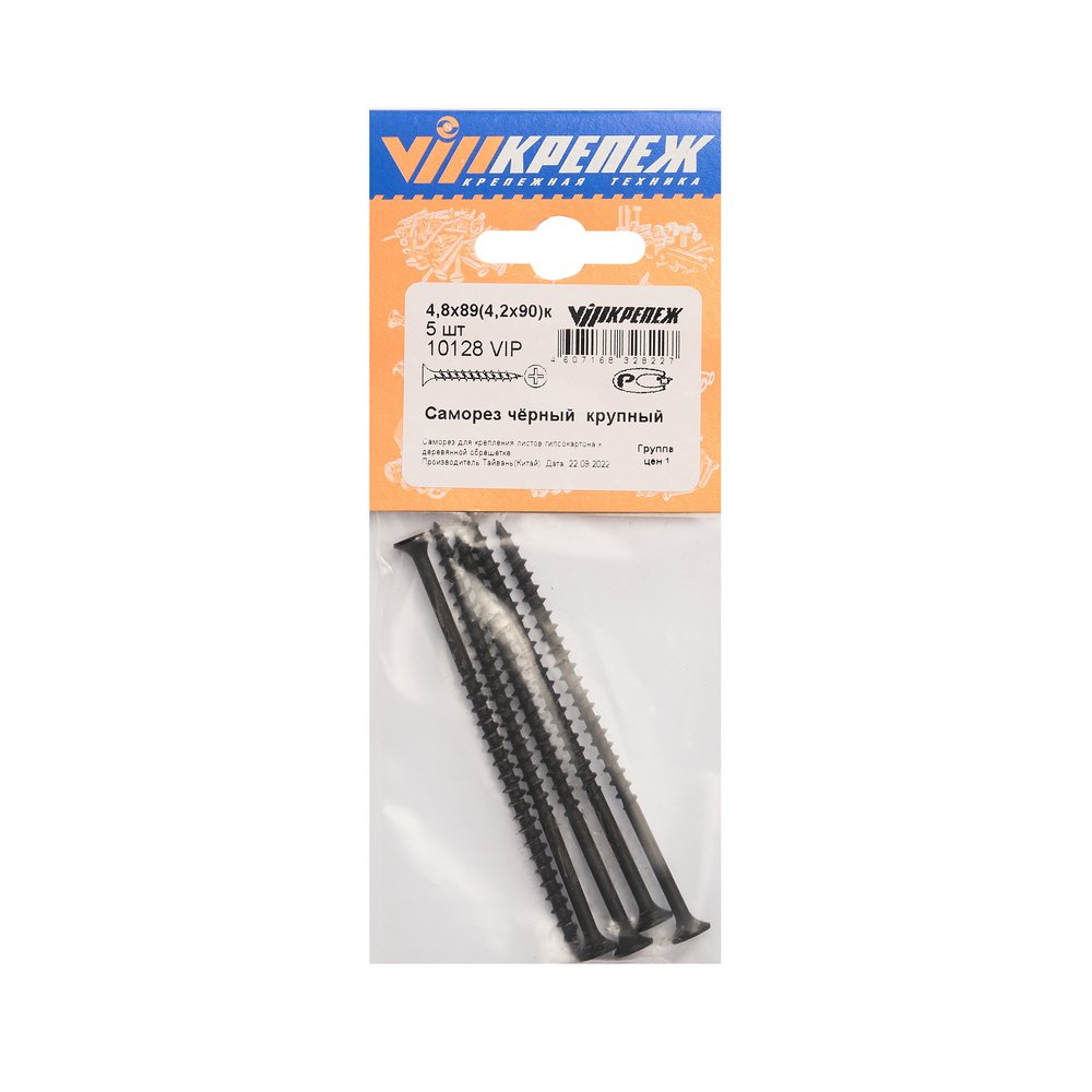 VIP Саморез черный 4,8х89 кр 5шт 10128