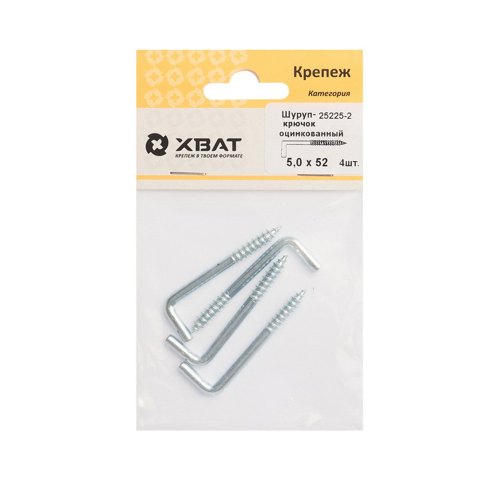 Шуруп-крючок Г-образный 5х52 4шт Хват 25225-2