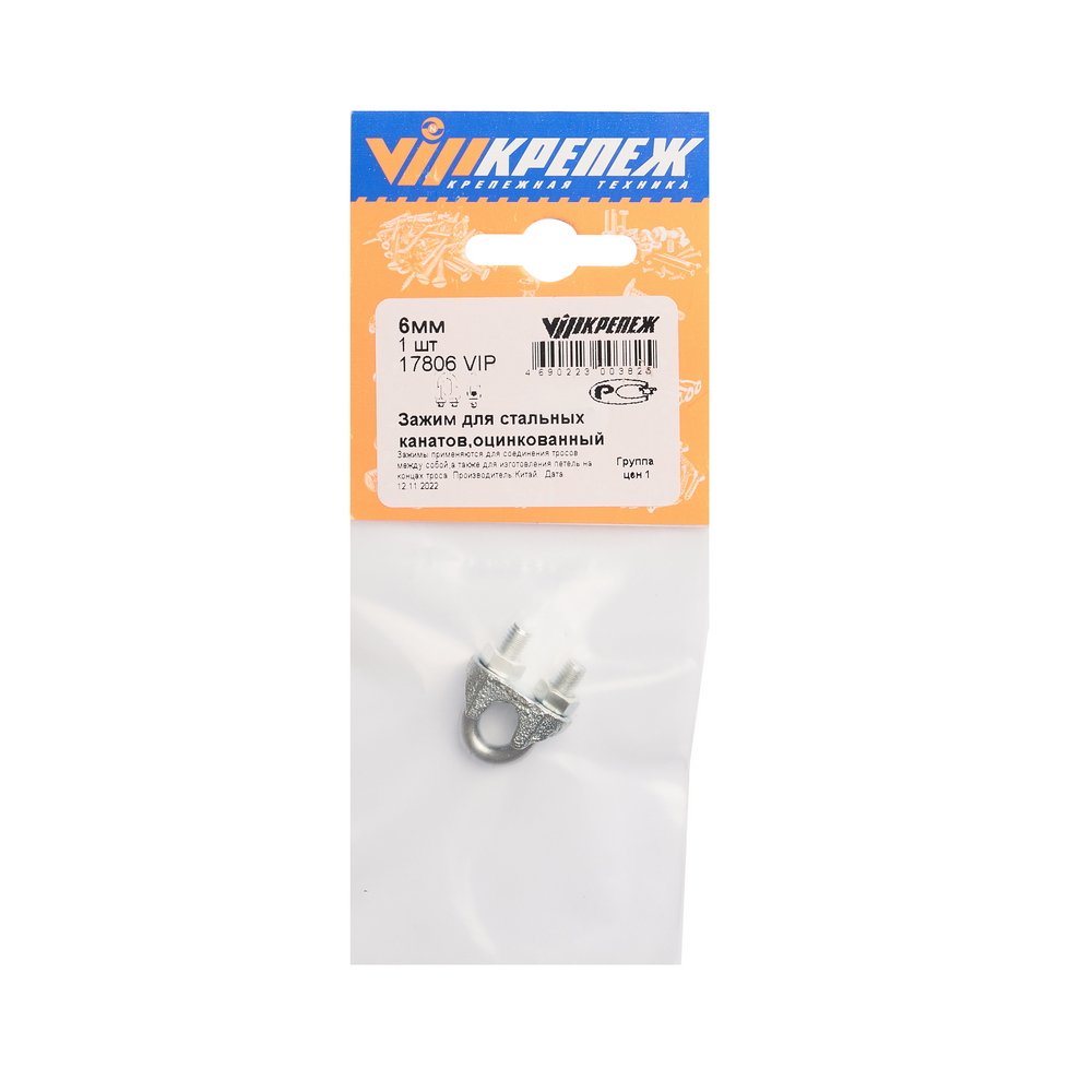 VIP Зажим д/стальных канатов оцинк 6мм 1шт 17806