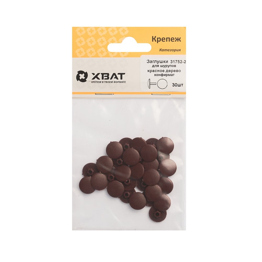 Заглушки д/конфирмат кр дерево 30шт Хват 31752-2